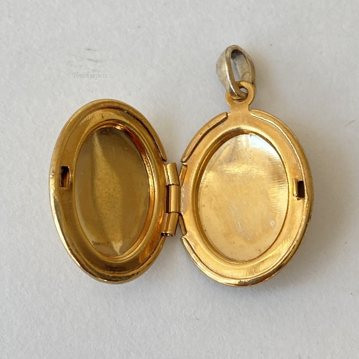 m168 Vintage Gold Filled Gold Tone Oval Locket Pendant Carved Floral Decor