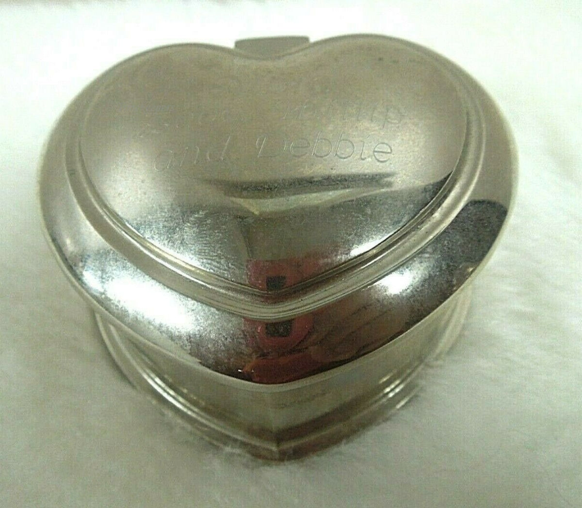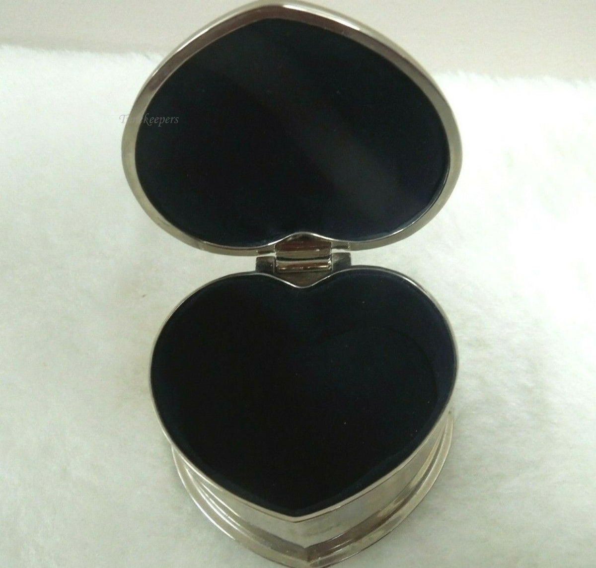 For Sale: (1) q860 Vintage Metal Jewelry Trinket Heart Box Dark Blue Velvet Lining Silver Tone Engraved Name
