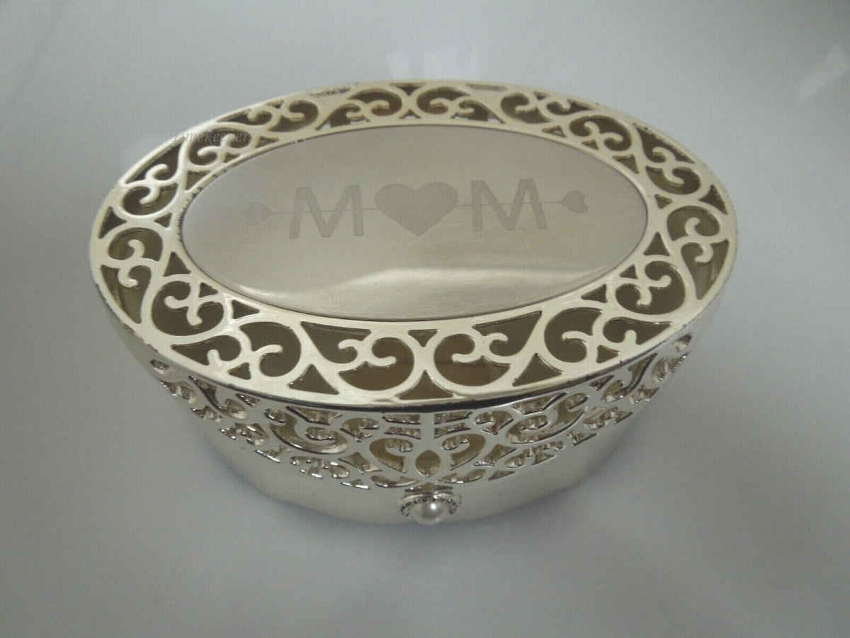 r969 Things Remembered Silver Plated Filigree Keepsake Jewelry Box-Mom Engraved
