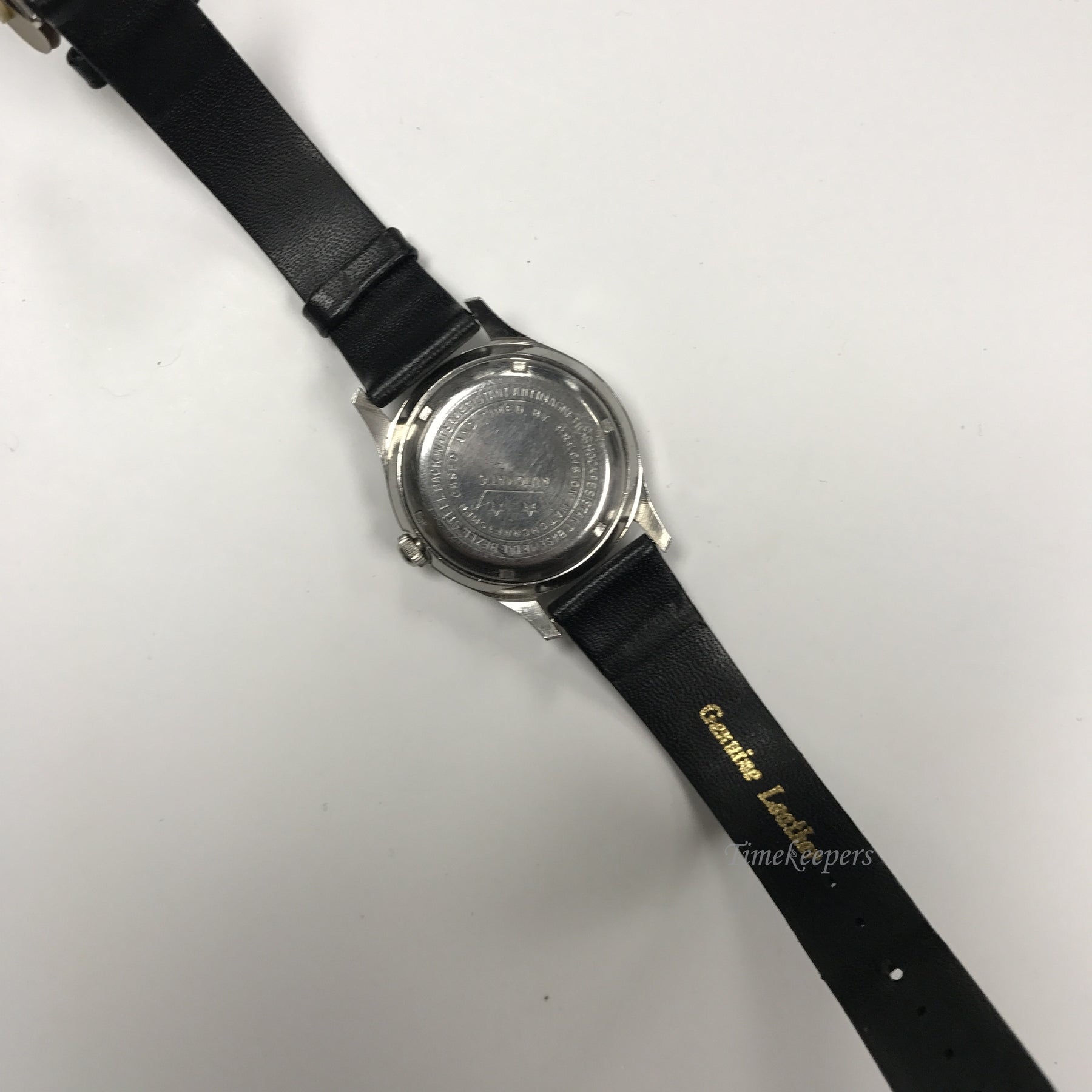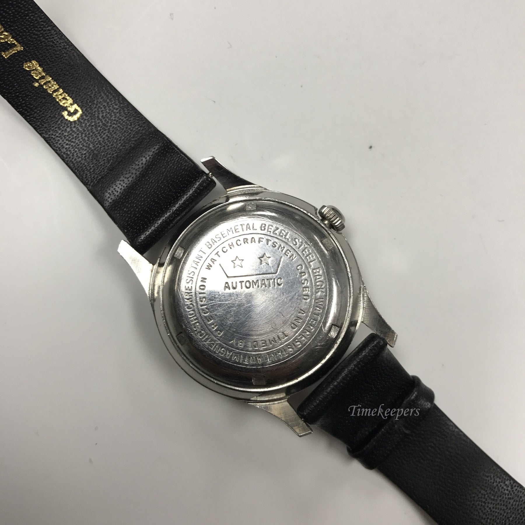 •Back reads: automatic. cased and timed by precision watchcraftsmen. waterresistant. antimagnetic. shock resistant. base metal bezel stainless steel back