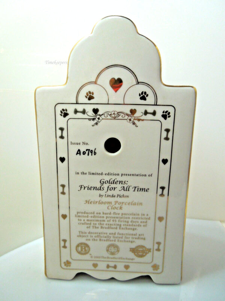 s876 Bradford Exchange Porcelain Clock "Goldens Are Friends for All Times" No. A 0796