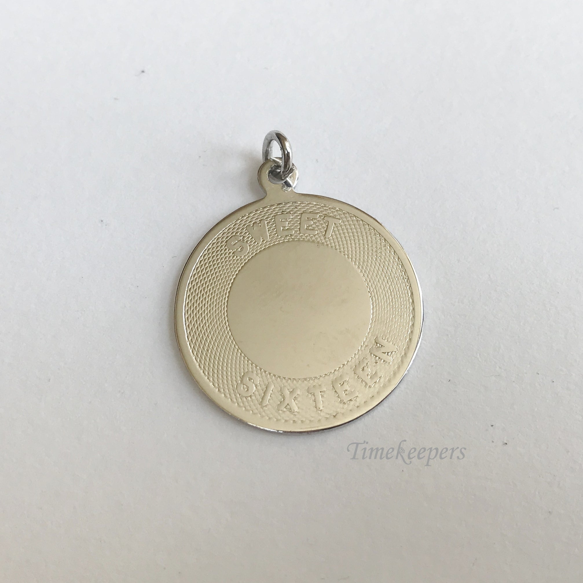 e245 Vintage Silver Tone Sweet Sixteen Round Charm Pendant