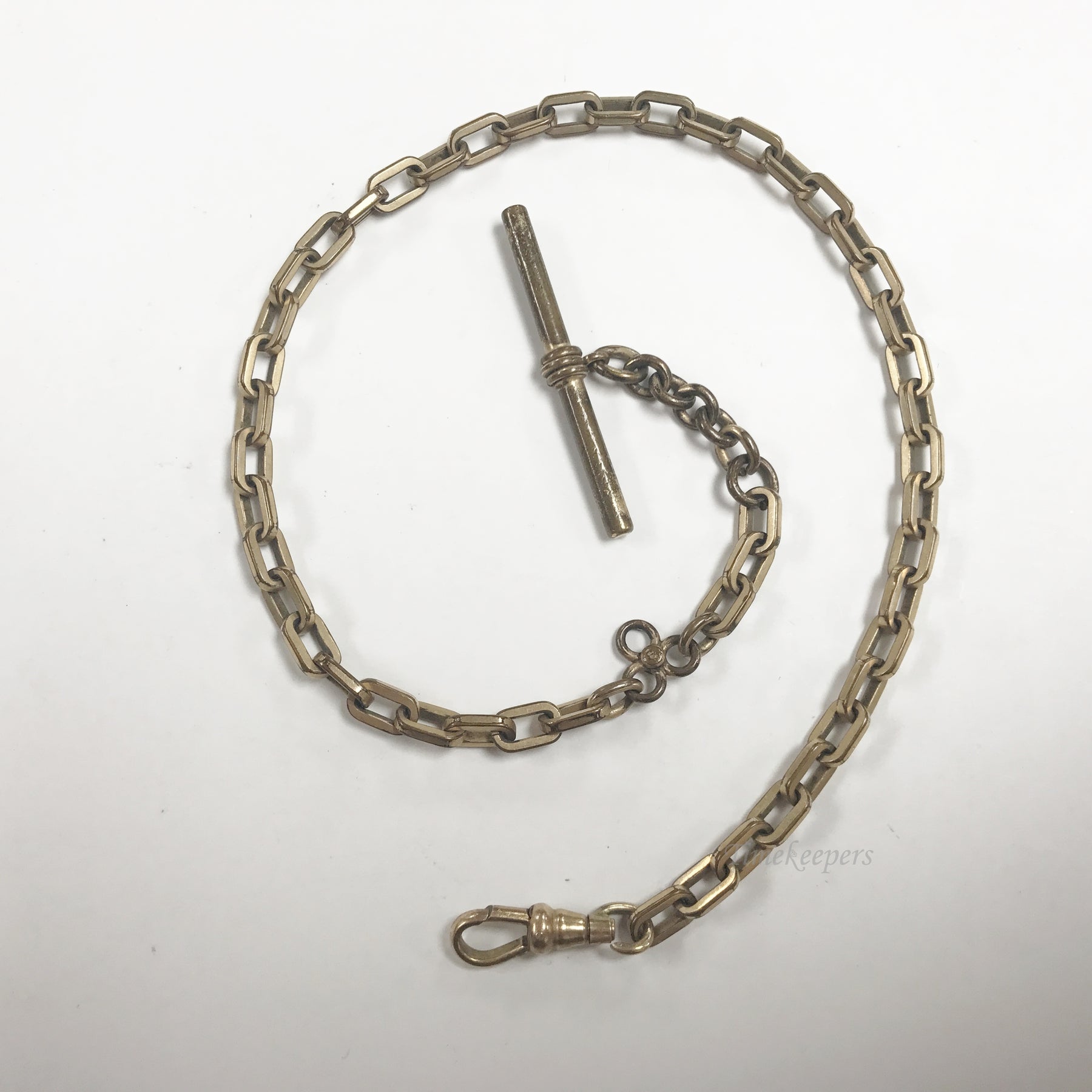 • Antique Pocket Watch Vest Chain. Gold Filled Gold Tone. Button bar, spring clasp.