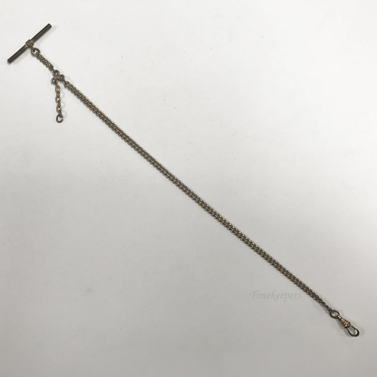 - Antique Pocket Watch Vest Chain. Gold Filled Gold Tone Round Link Chain, Spring Clasp, Button bar.
