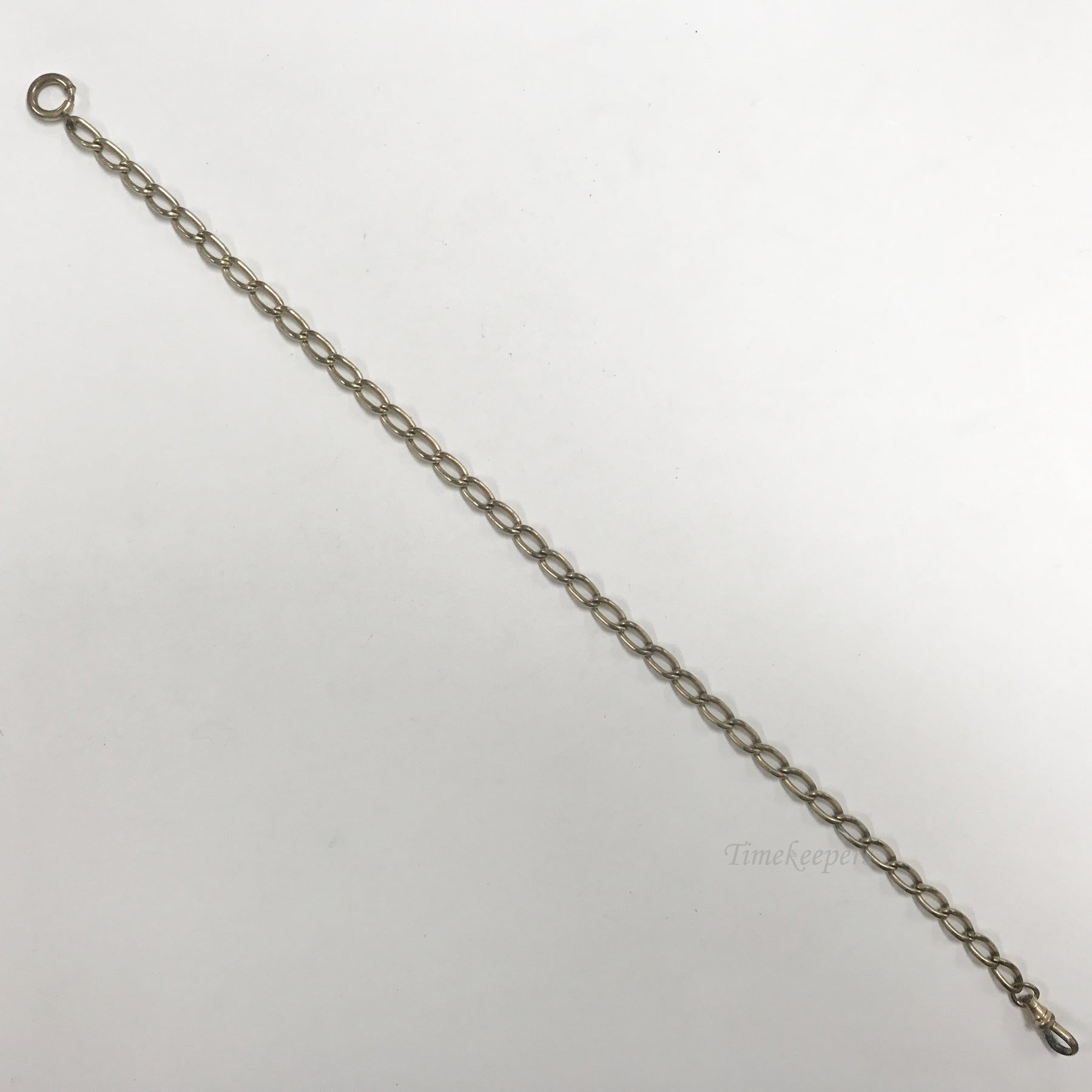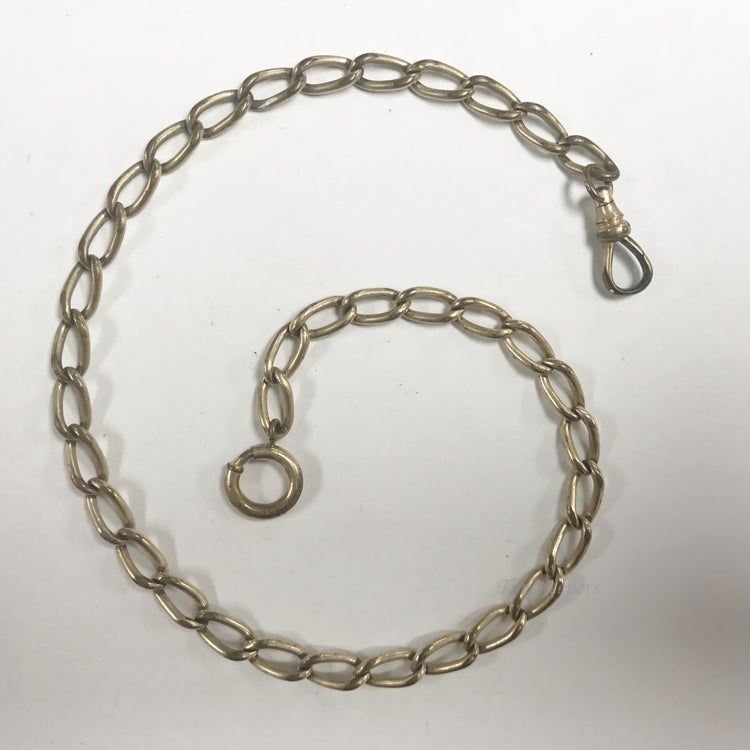 • Antique Pocket Watch Vest Chain. Gold Filled Gold Tone Oval Link Chain, Spring Clasp, Button ring.
