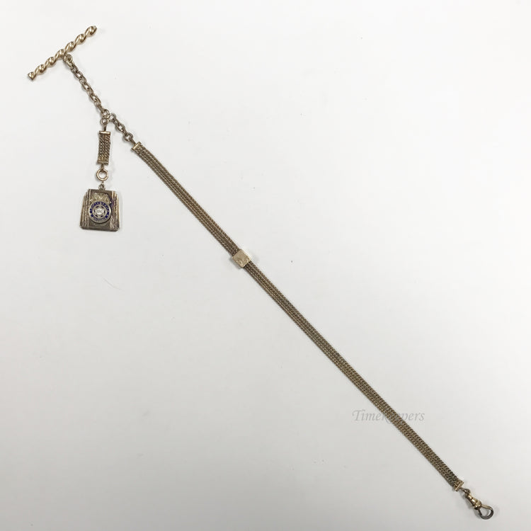 • Antique Pocket Watch Necklace Chain. Gold filled. Spring clasp for Pocket watch or pendant. Twisted Button Bar. Gold Filled slide. Gold filled medallion "I B of T C W & H of A. Registered"