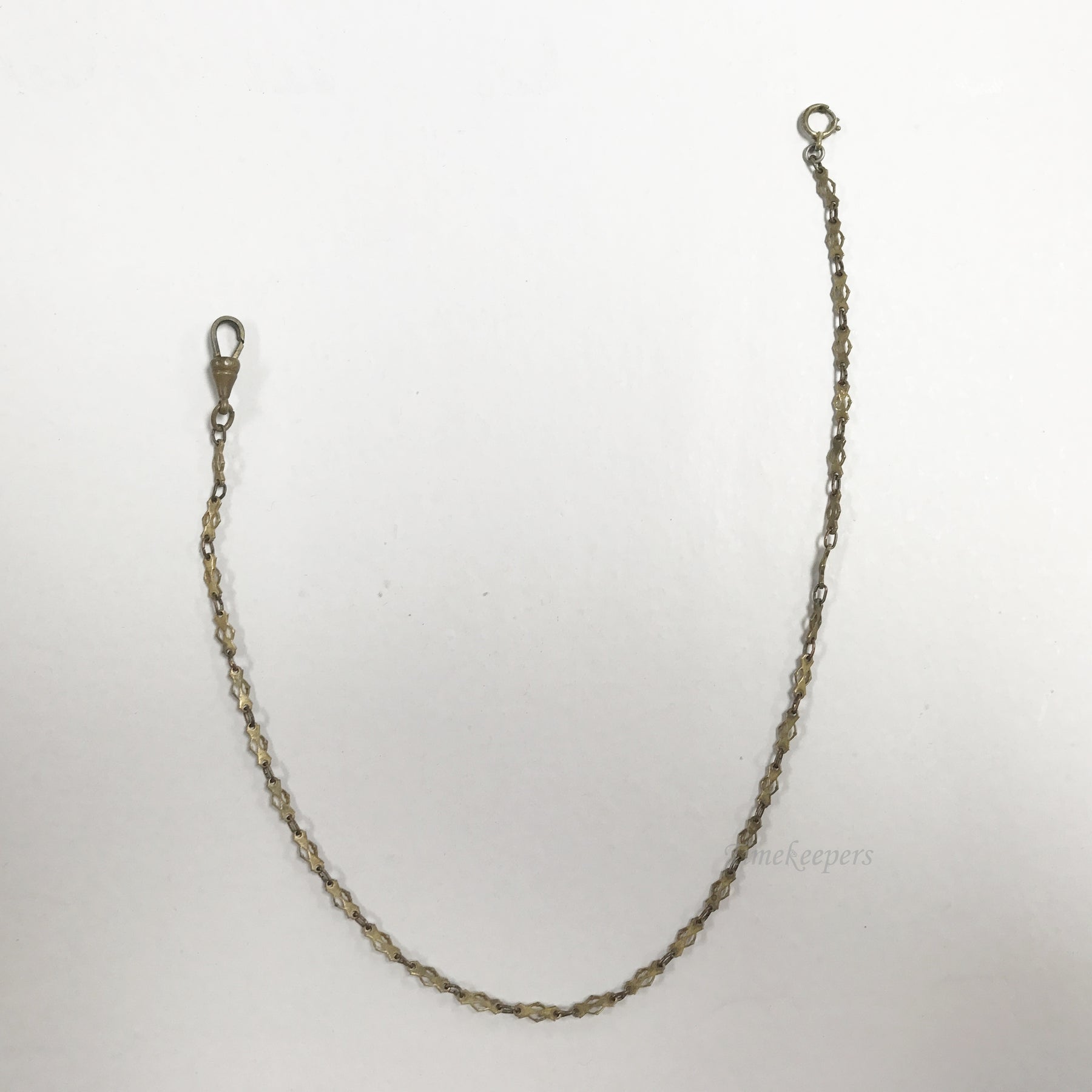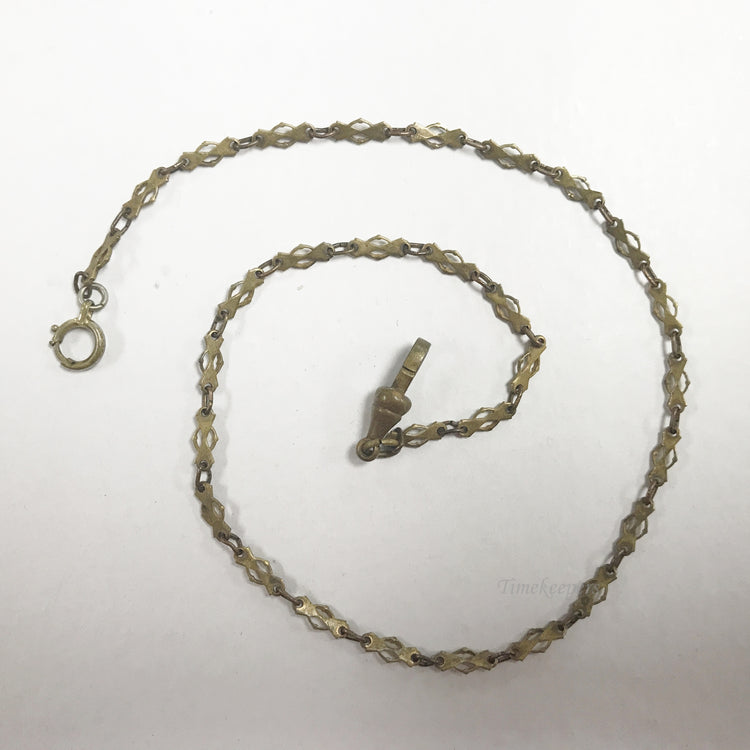 - Antique Pocket Watch Vest Chain. Gold Filled Gold Tone. Button ring, spring clasp, rare link chain.