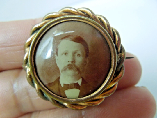 s974 Circa 1900 Antique Art Nouveau Photo Gold Filled Pin Victorian Gentleman