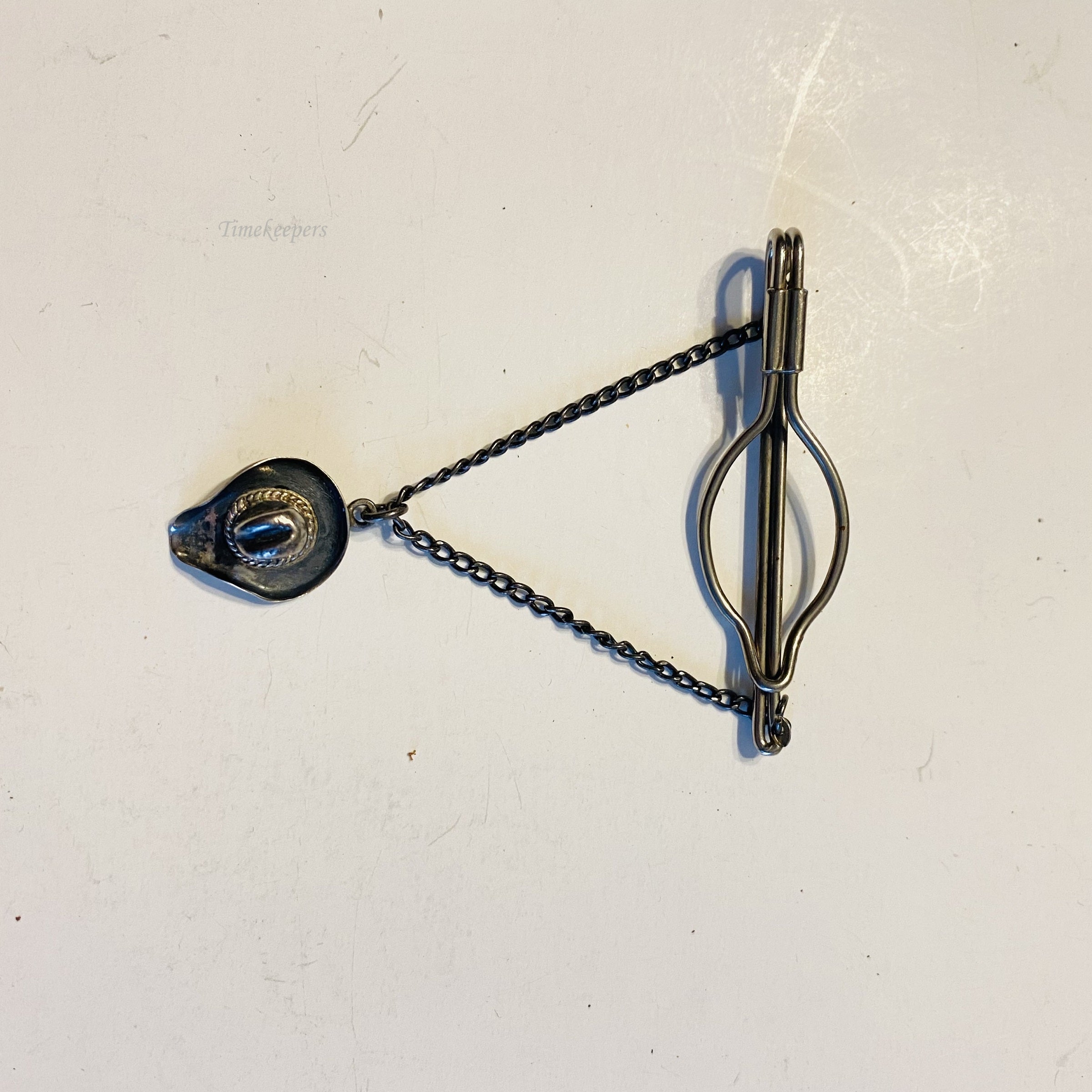 f587 Vintage Collectible Silver Tone Tie Bar with Sterling Cowboy Hat Pendant