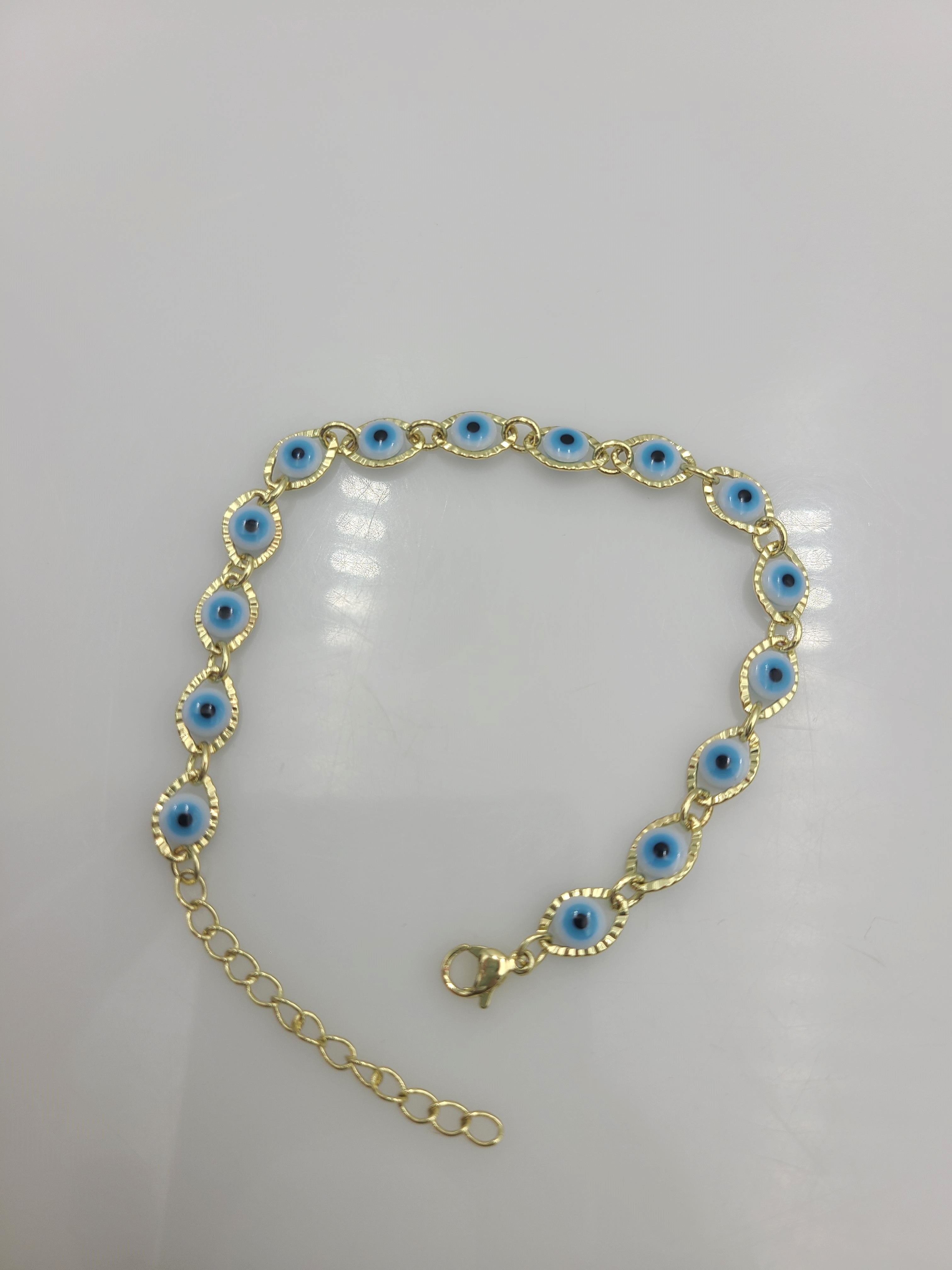 p449 Gold Tone Blue Evil Eye Luck Bracelet