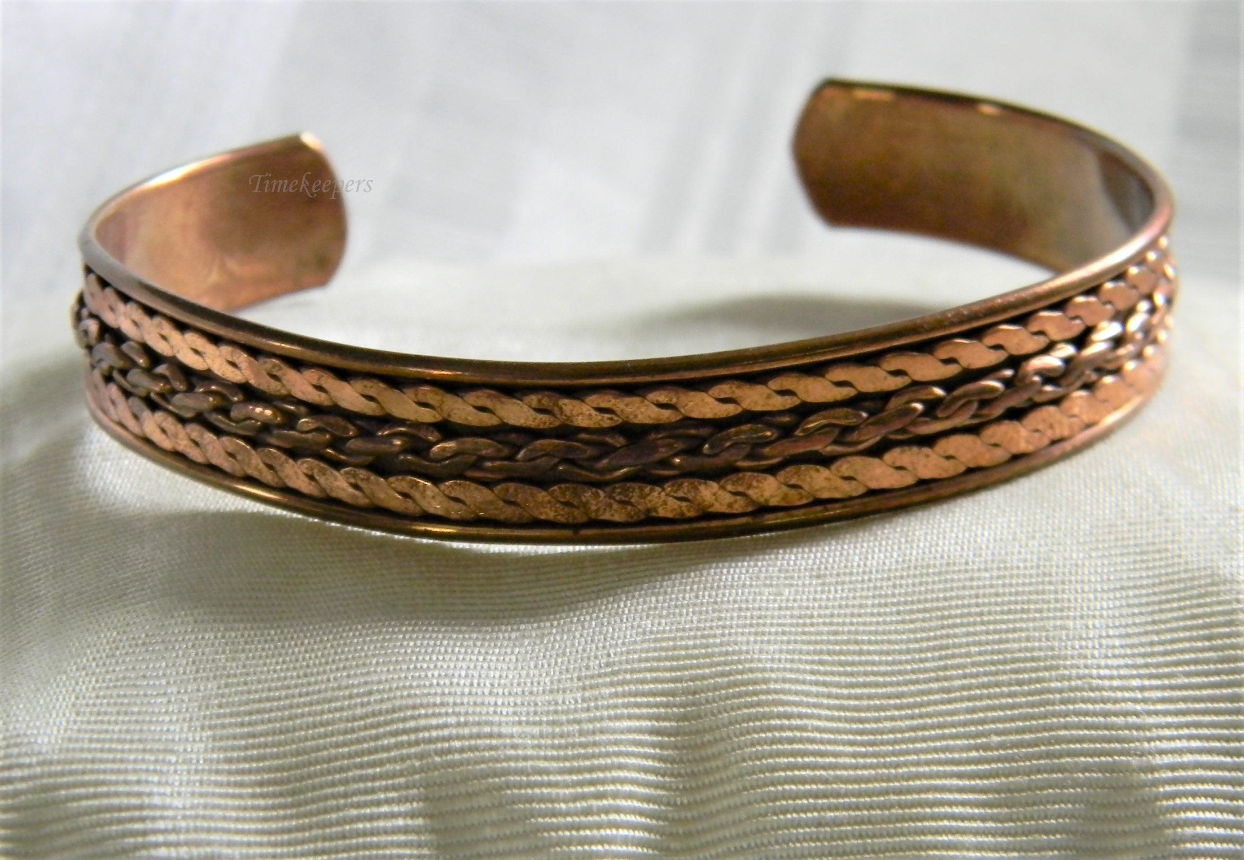 h758 Beautiful Unique Vintage Copper Cuff Bracelet with Applied Chain Design