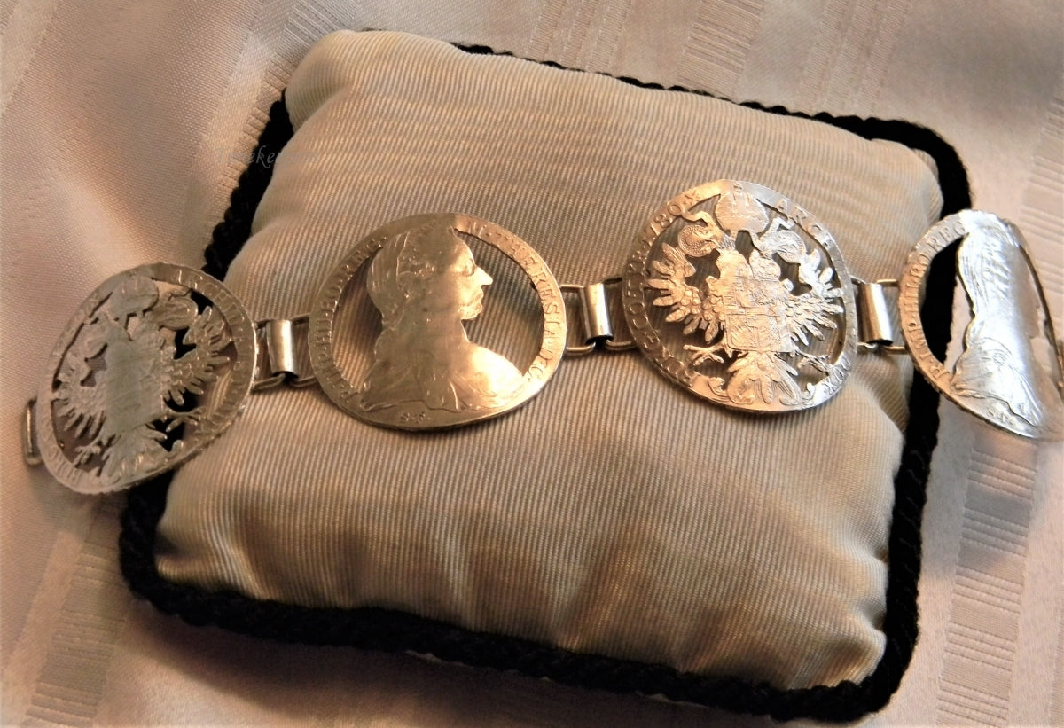 p045 Unique Vintage Cut away Silver Coin Bracelet with Hook Clasp