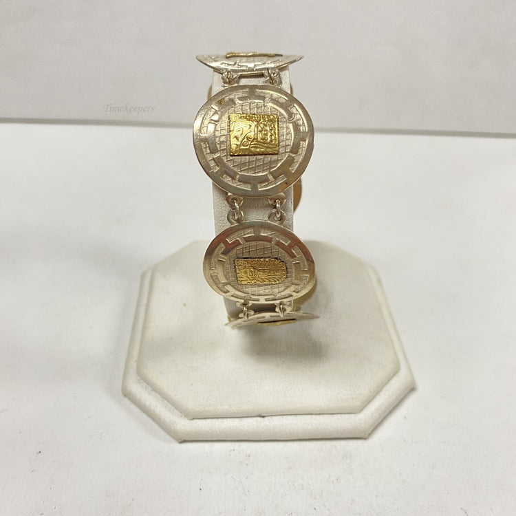 m177 Vintage Sterling Silver 18K Yellow Gold Peruvian Tribal Symbols Bracelet