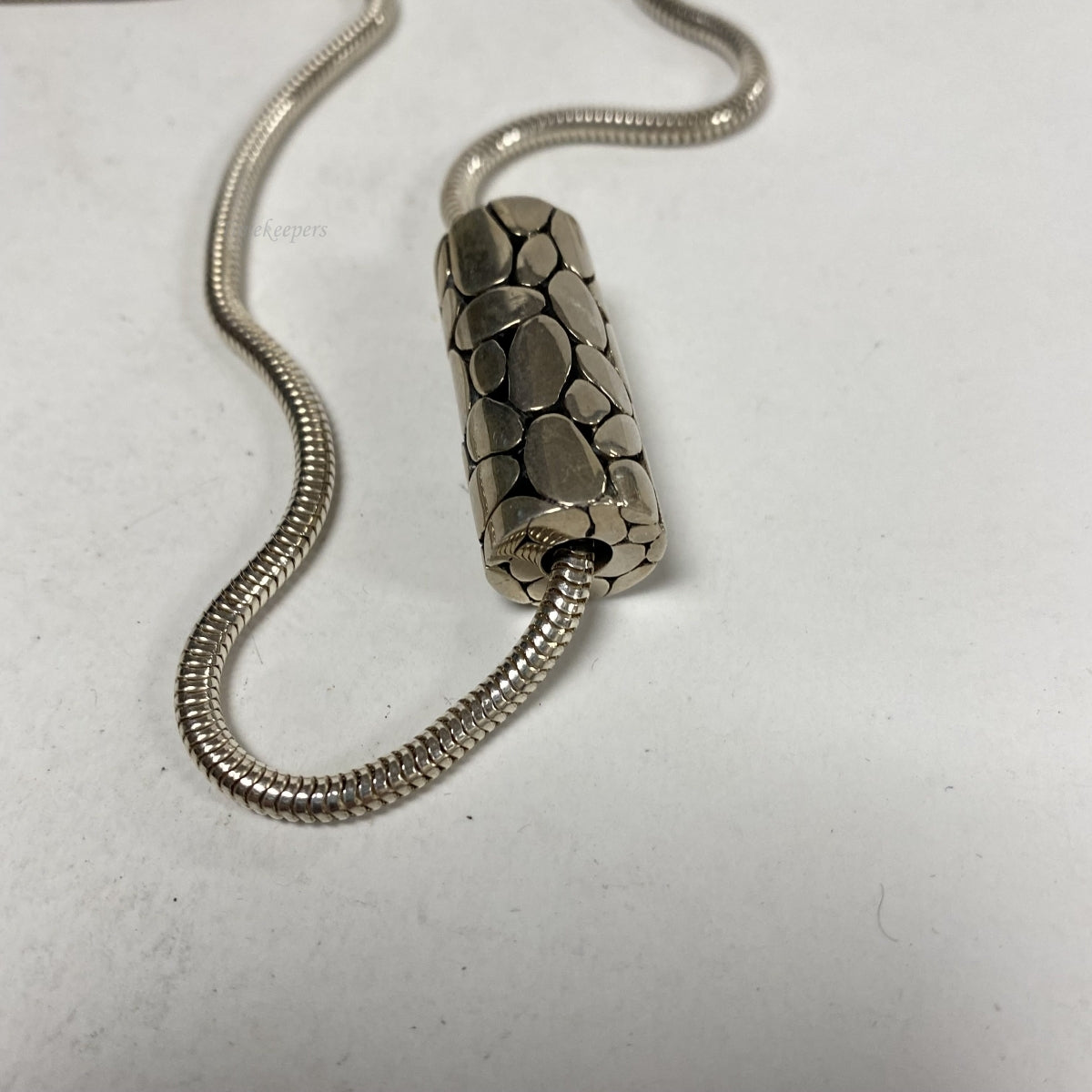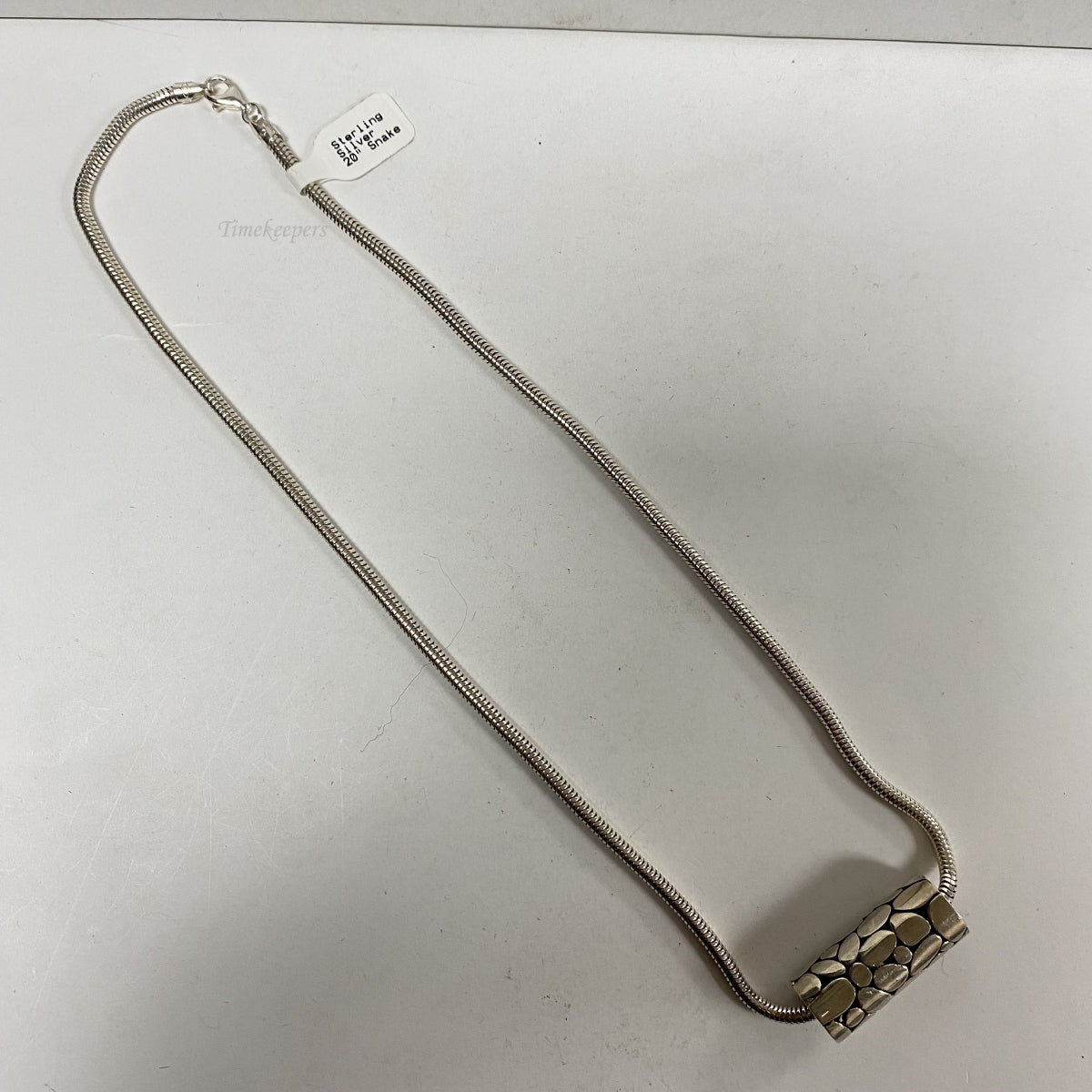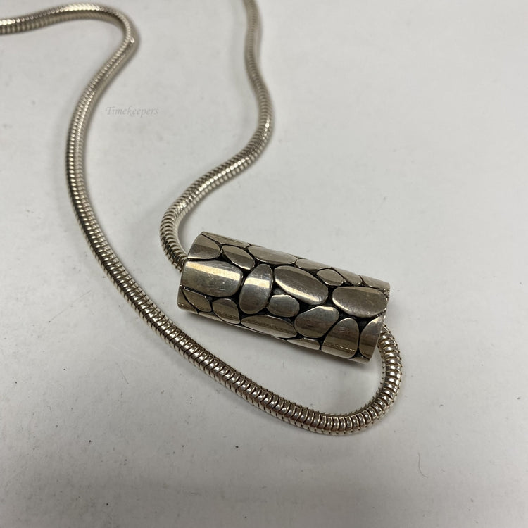 b857 Vintage 20" Sterling Silver Rounded Snake Chain Necklace Sliding Pendant