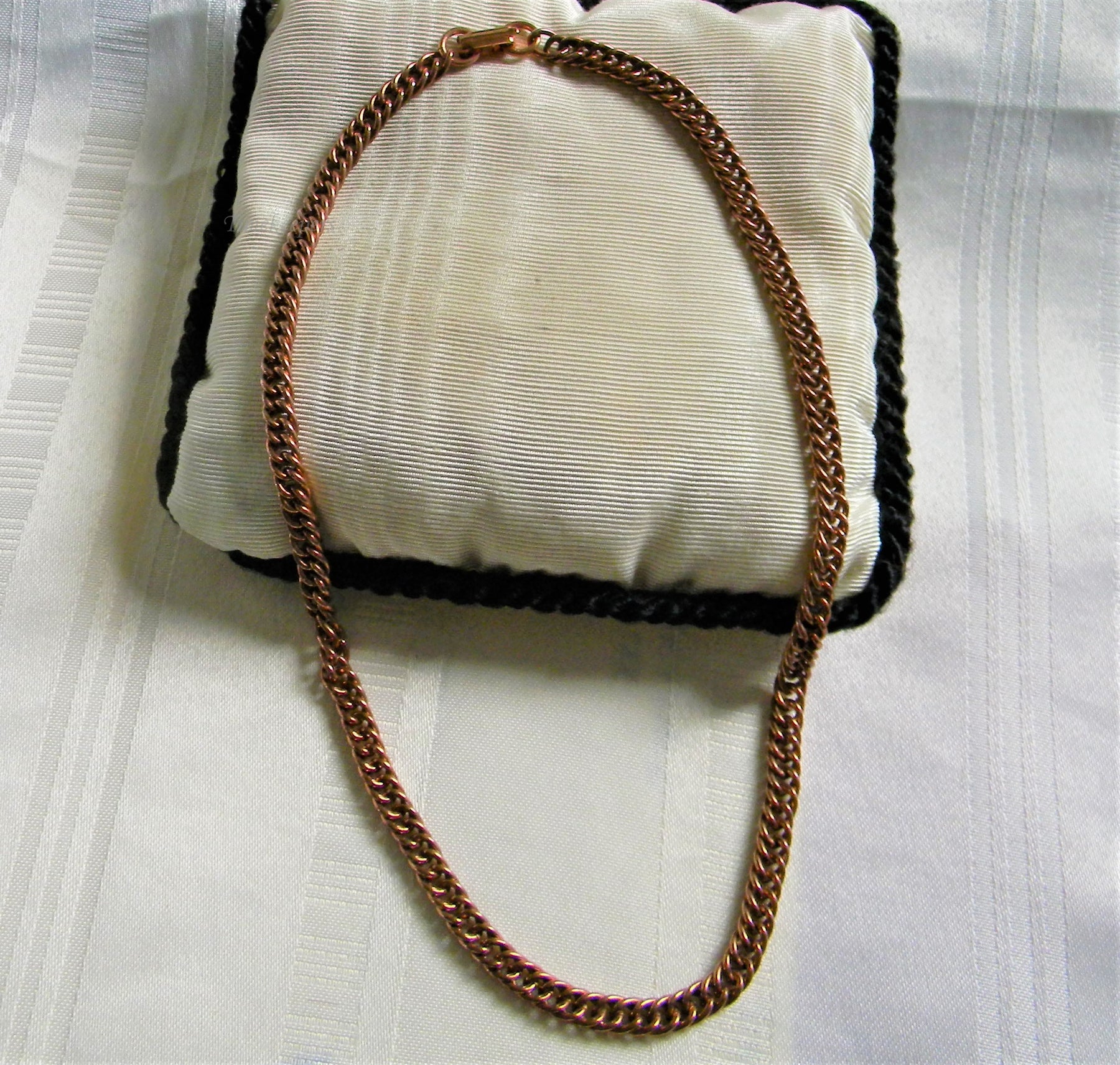 h763 Nice Vintage Medium Copper Curb Link Necklace with Fold over Clasp