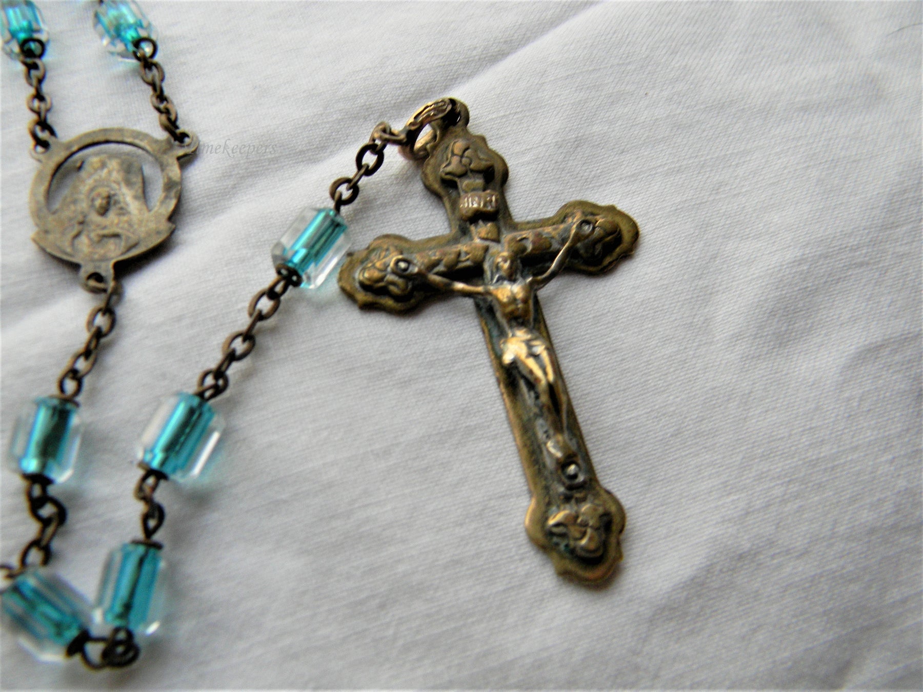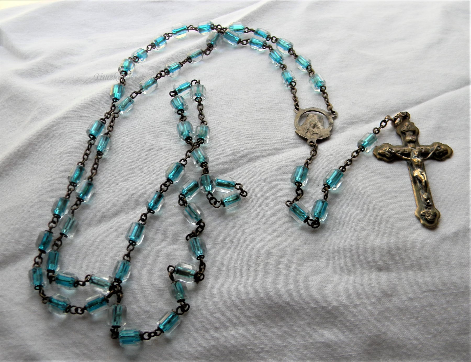 For Sale: (1) Nice Vintage Catholic Rosary with Blue and Clear Beads