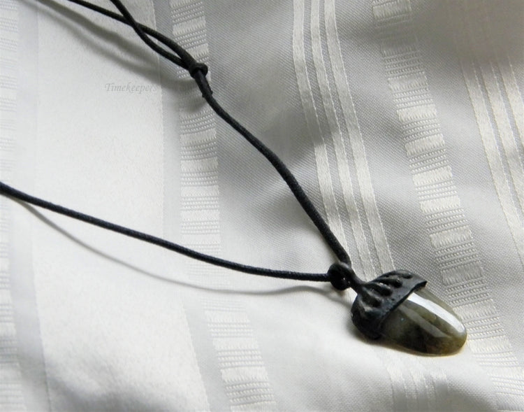 p016 Nice Green Polished Jasper Stone Pendant on Adjustable Black Cord