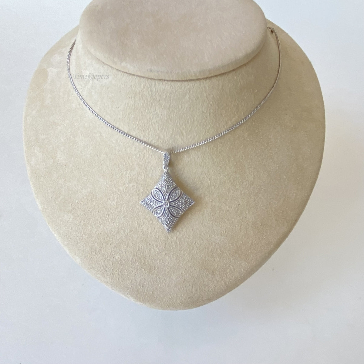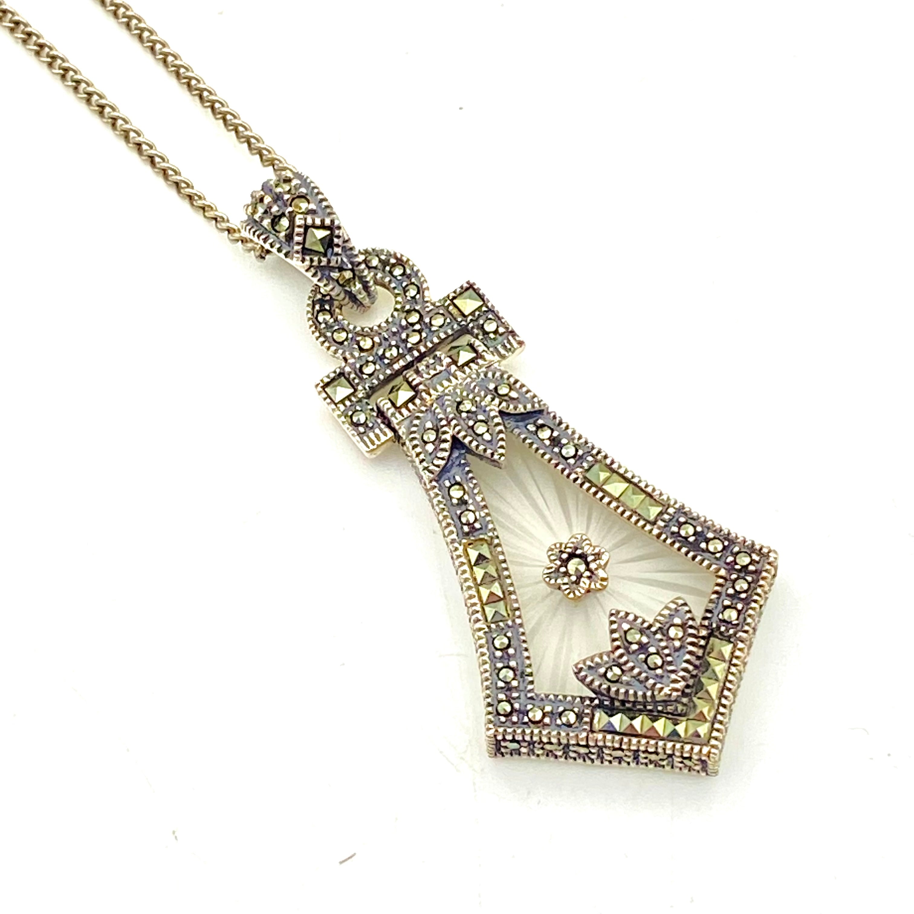 m047 Vintage Sterling Silver Chain Necklace 24" Unique Marcasite Pendant Charm