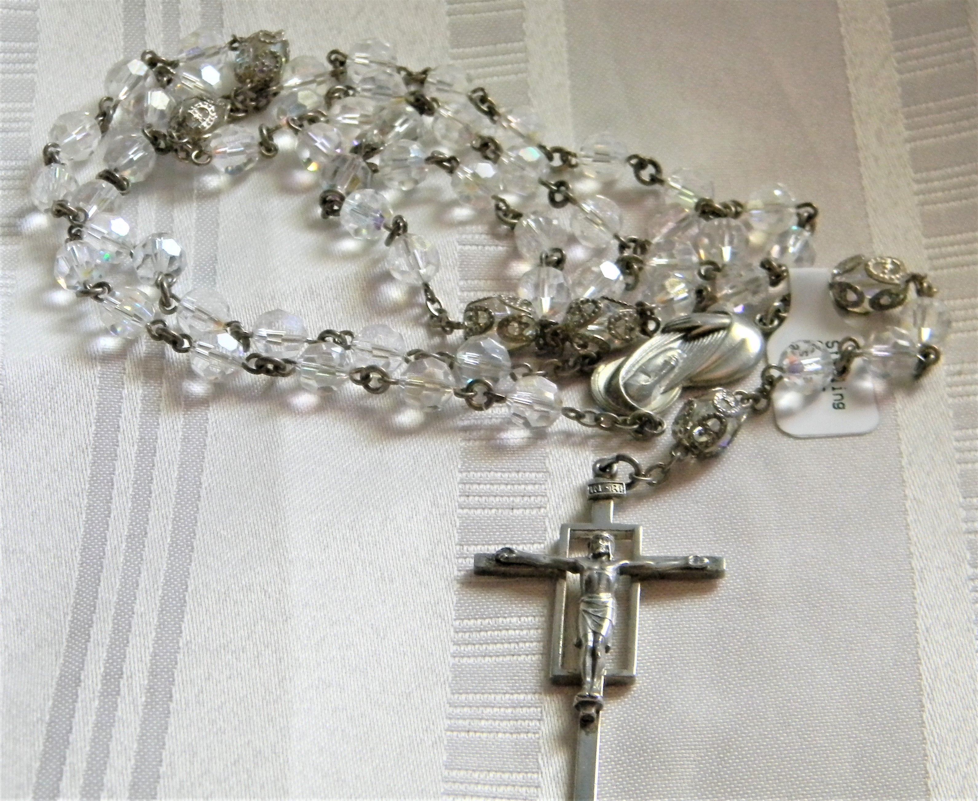 h880 Beautiful Vintage Rosary with Faceted Crystal Beads Sterling Accessories
