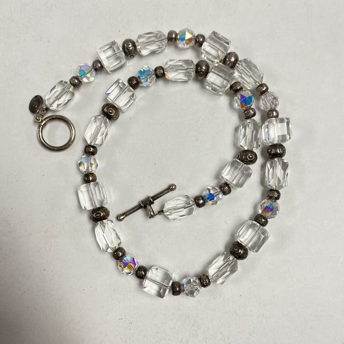 m255 Vintage Art Deco Faceted Clear Bead Necklace 17"