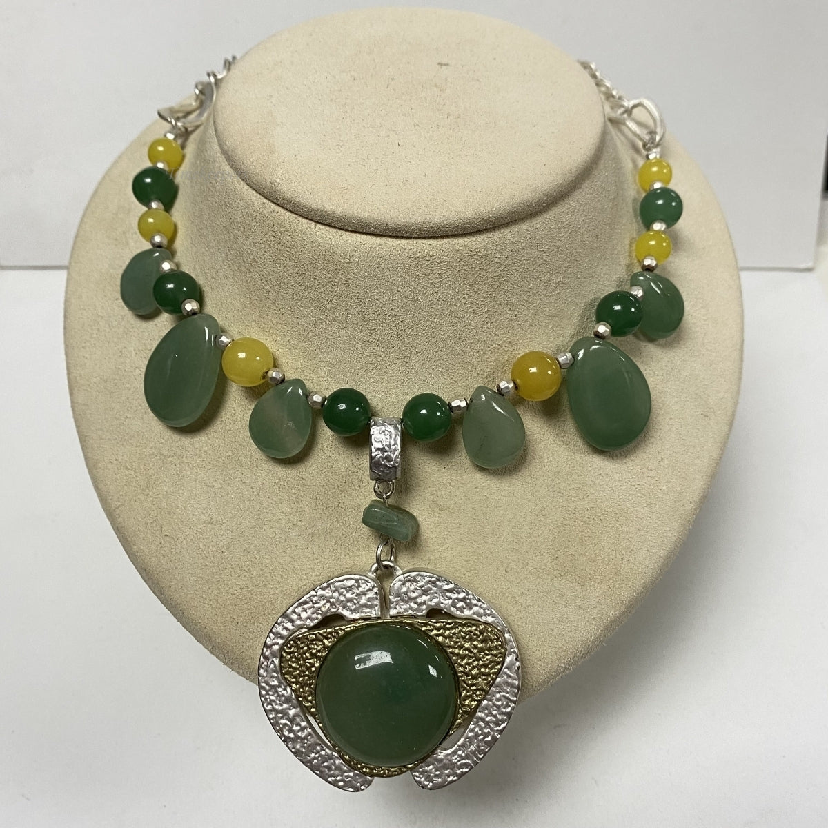 m256 Vintage Silver Tone Hardware Jade Bead Necklace 21"