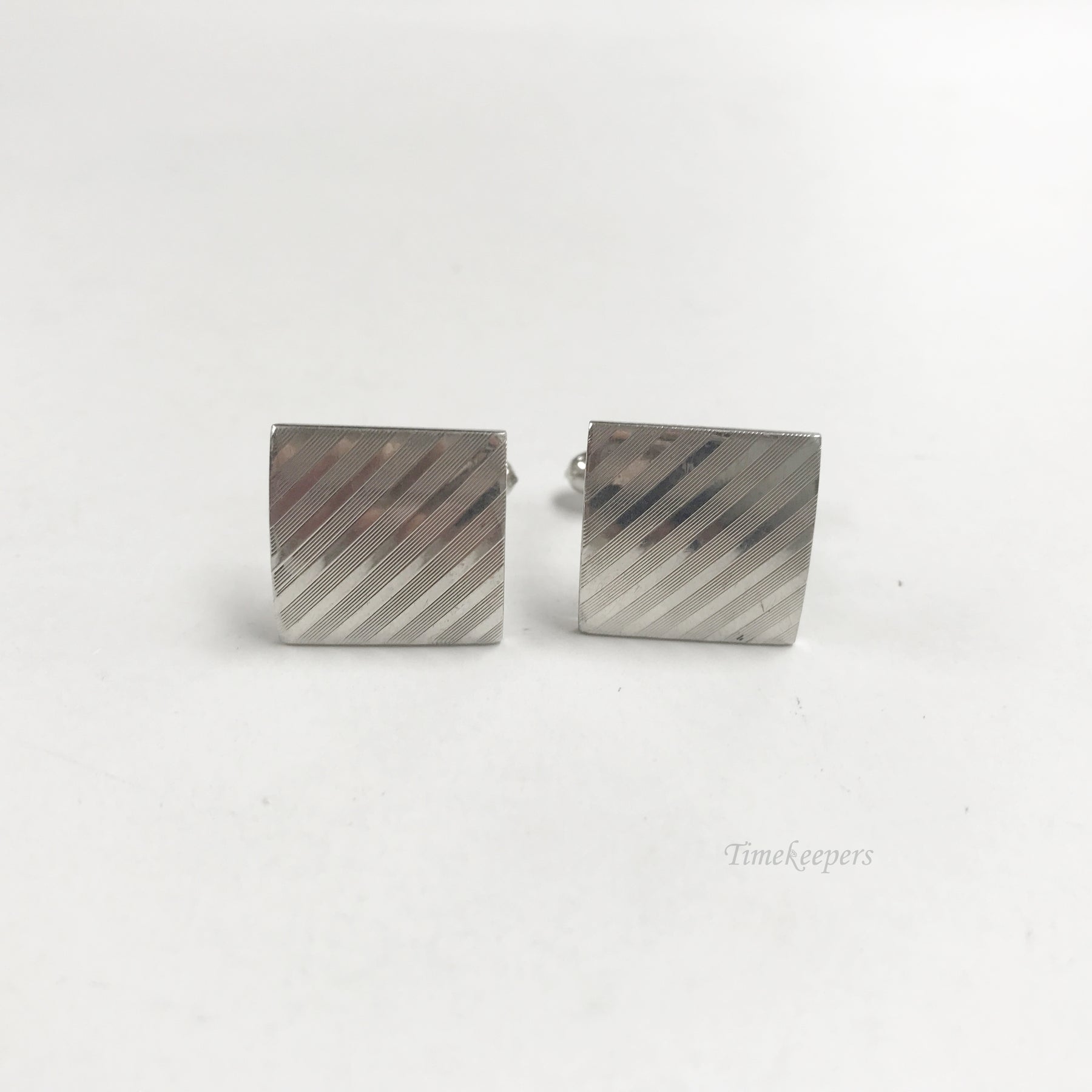 - Vintage Silver Tone Cuff Links. Square with stripes. Lamode 10K 1/20 GF