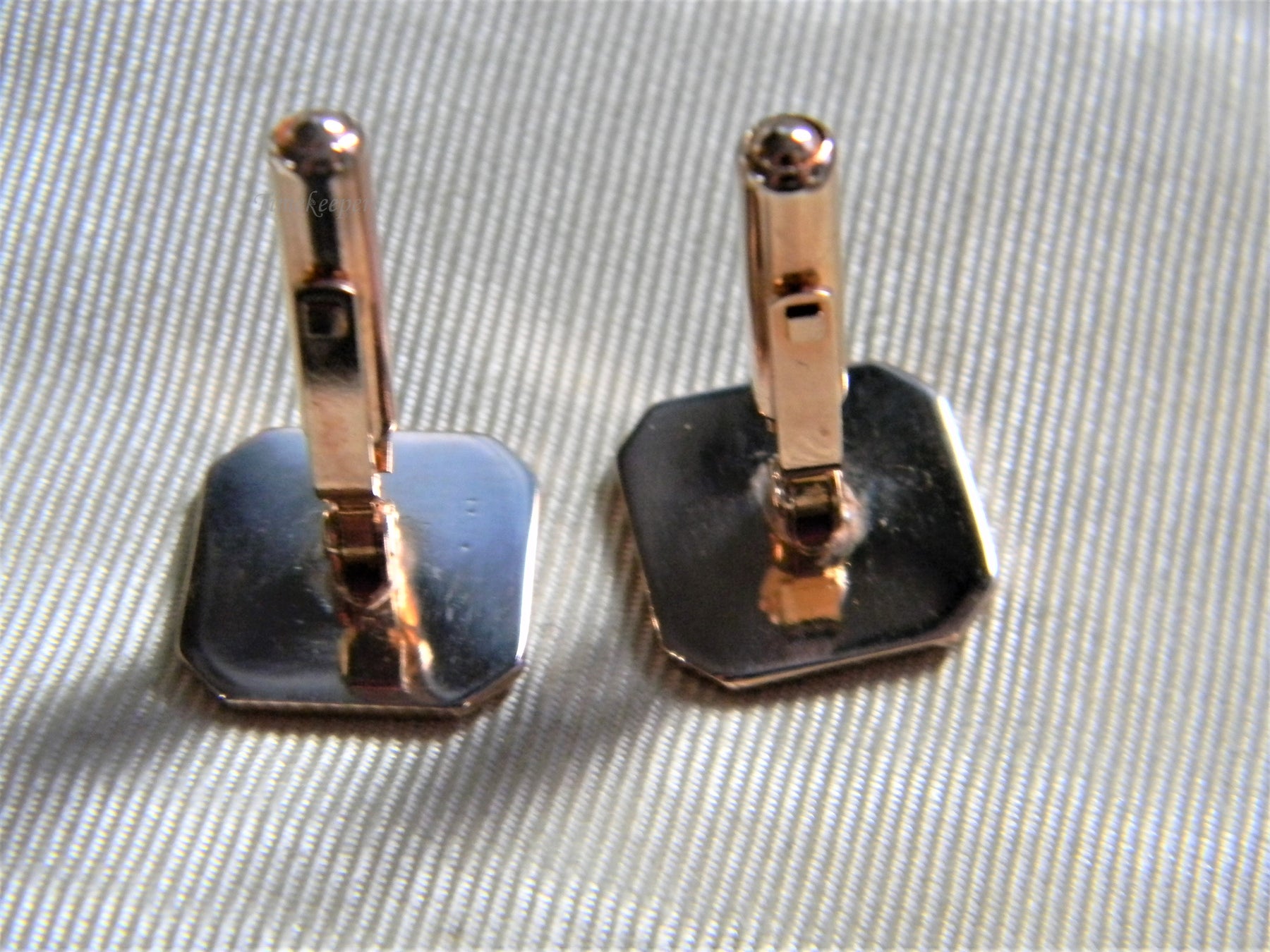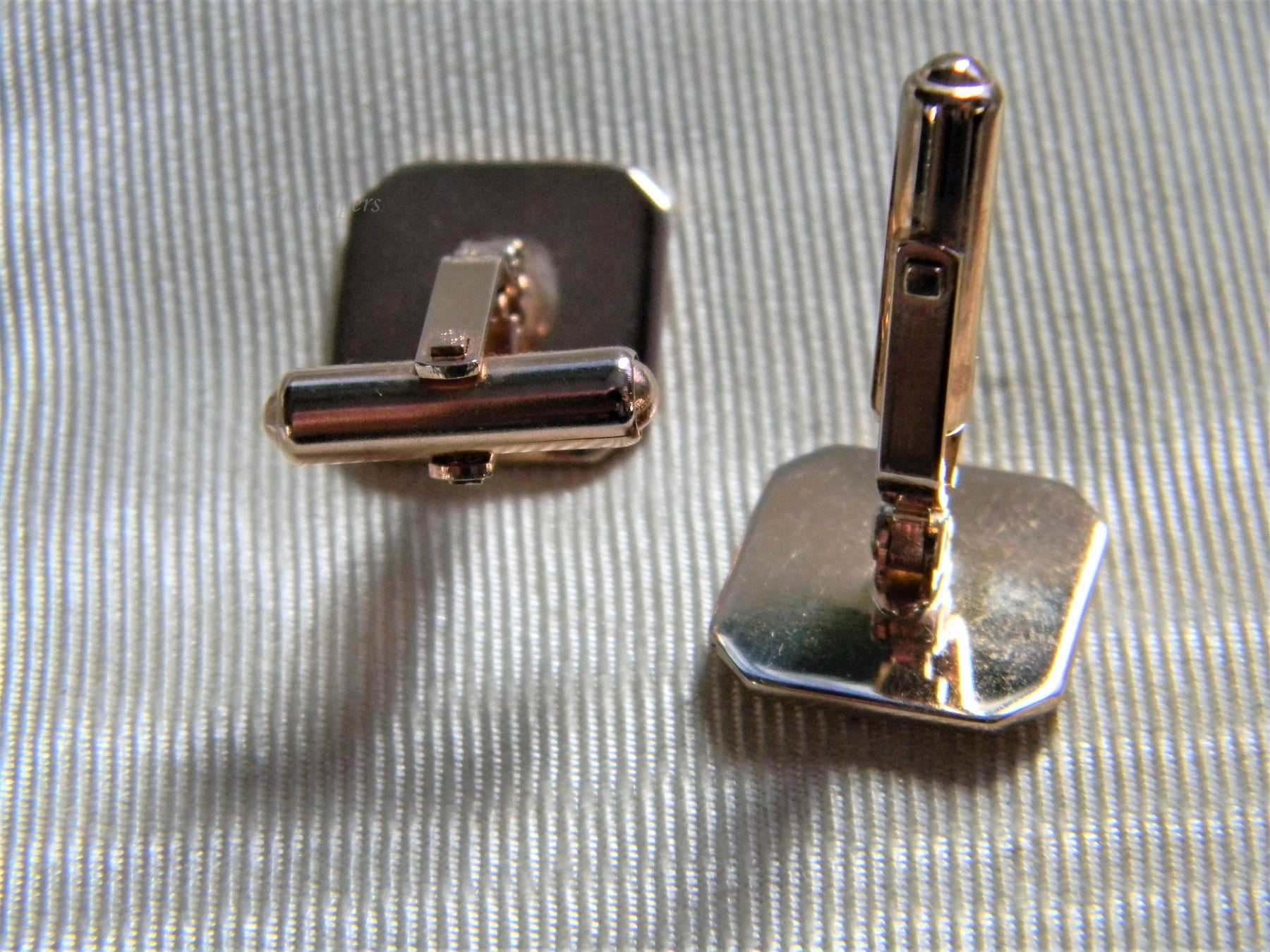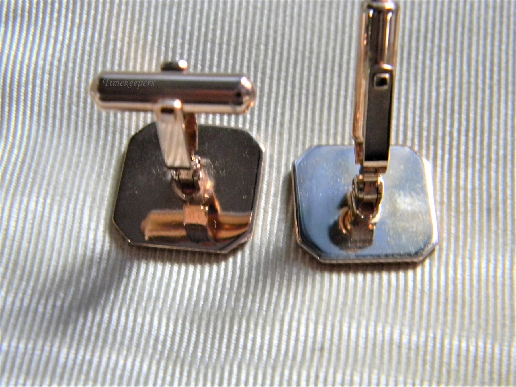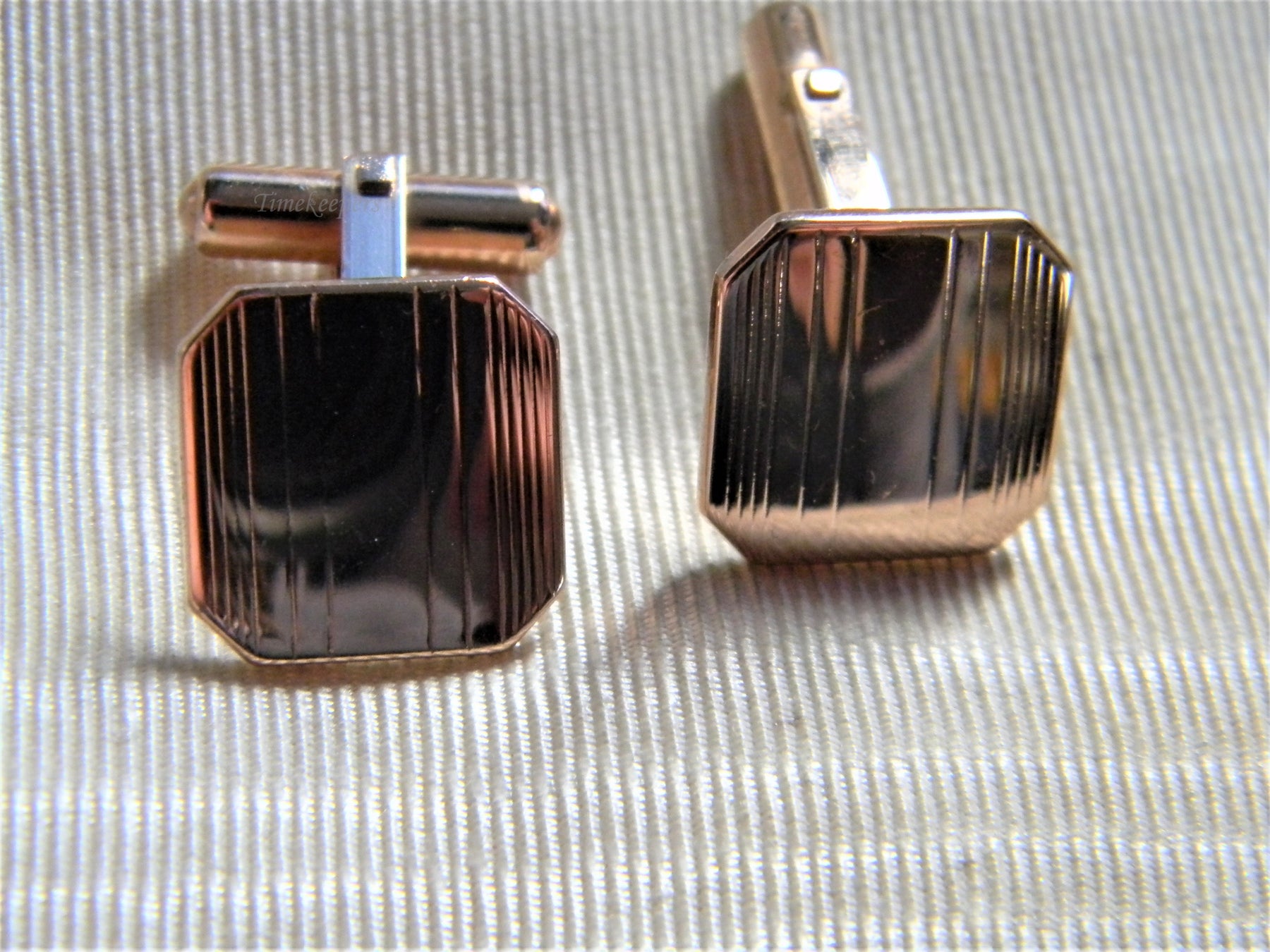 For Sale: Handsome Vintage Square Striped Cuff Links in Rose Gold Tone