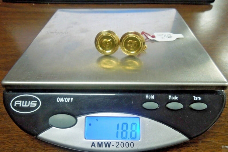 r793 Handmade Victorian Era 18K Yellow Gold 19.96mm Roman Soldier Cufflinks Signed 18.8g
