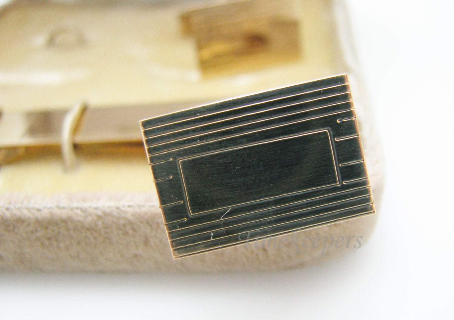 For Sale: (1) Vintage 12k Gold Filled, Etched Stripes, Tie Bar and Cuff Link Set In box