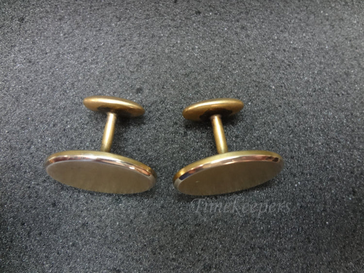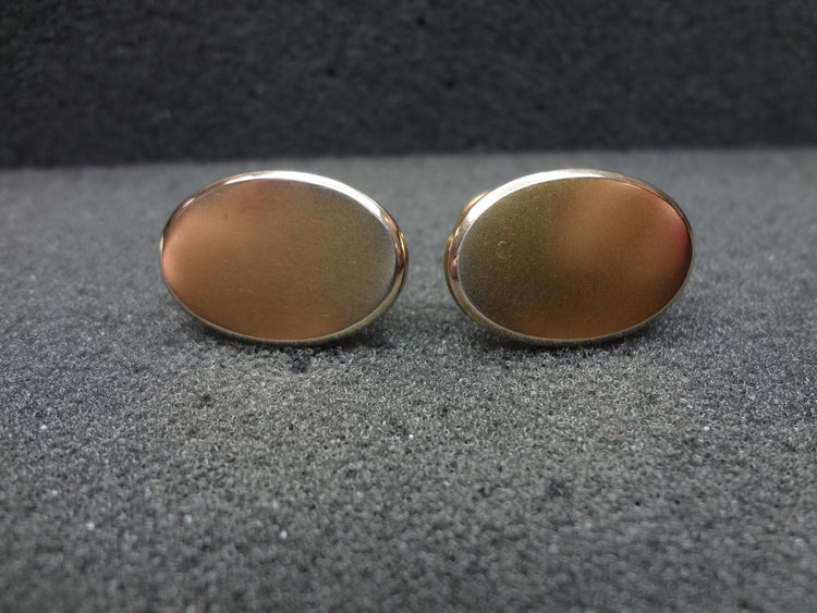 Vintage pair of oval cuff links in a brushed gold tone finish. They still look great for their age.