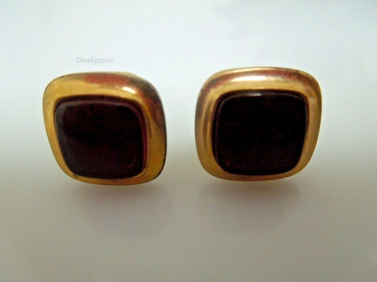 r842 Correct Quality Vintage Gold Tone Red Cabochon Square Cufflinks