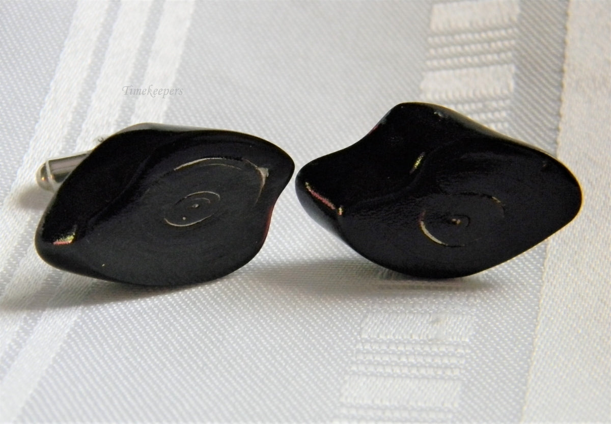 r368 Vintage Cufflinks Black Oval Gold tone Men's Jewelry