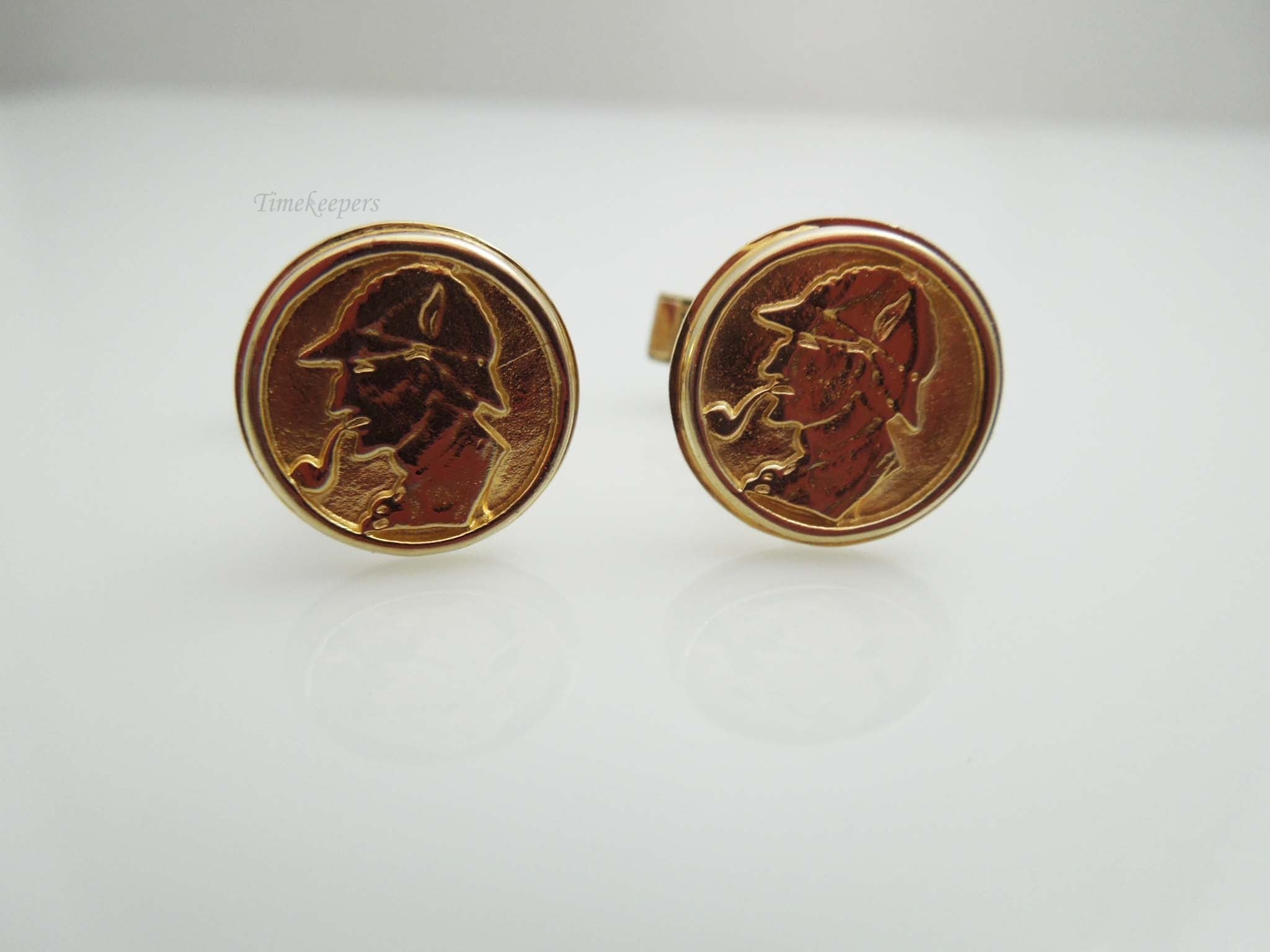 g686 Handsome Men's 14kt Yellow Gold Sherlock Holmes Cufflinks