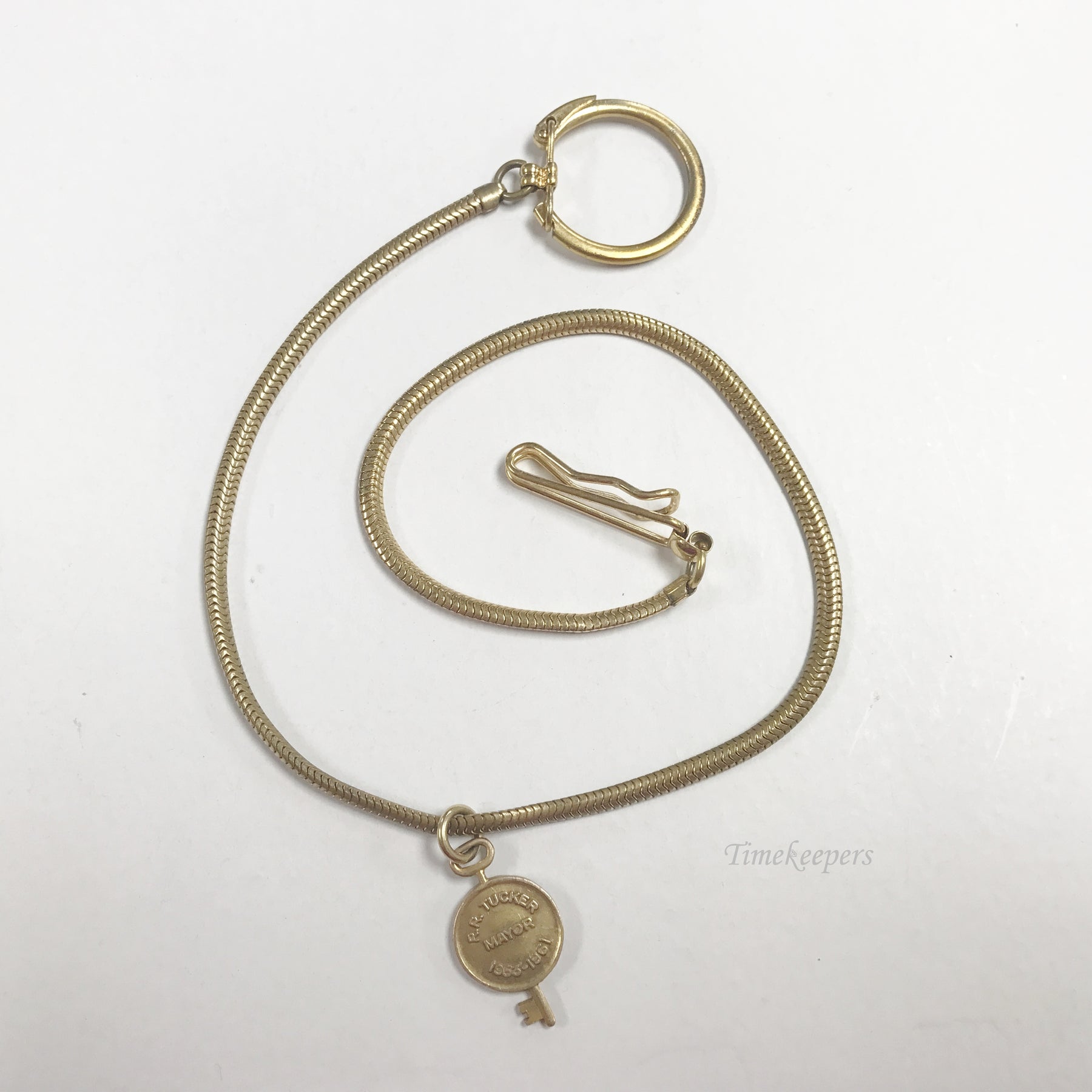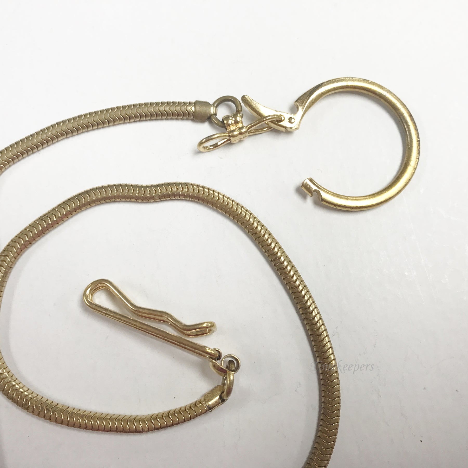 • Antique Pocket Watch Vest Chain. Gold Filled Gold Tone. Pocket/Belt Clip. Large 1.2" in diameter watch ring.