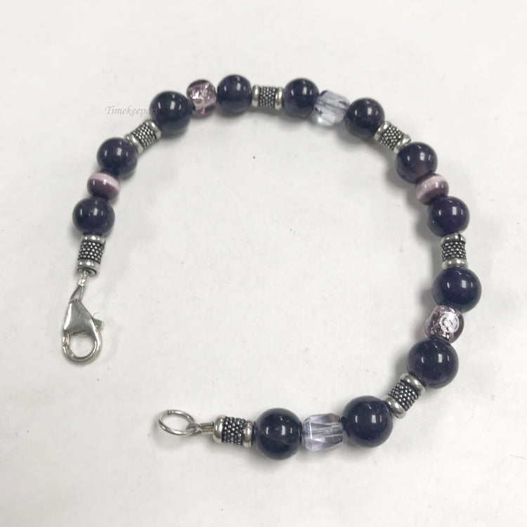 f146 Vintage Sterling Silver Amethyst Bead Bracelet 8"