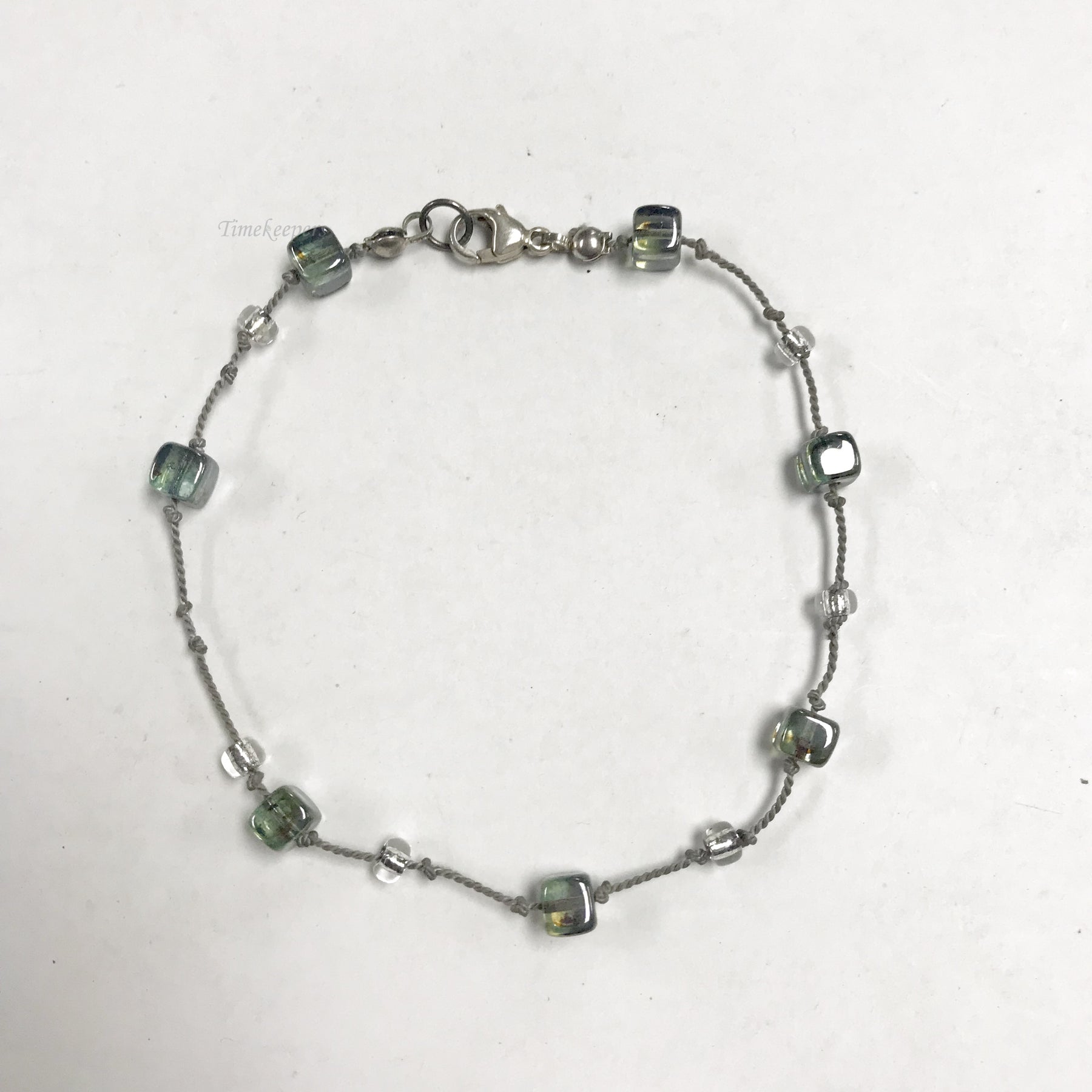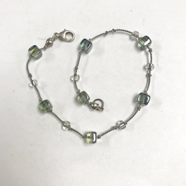 f147 Vintage Sterling Silver Green Stone Bead Bracelet 9"