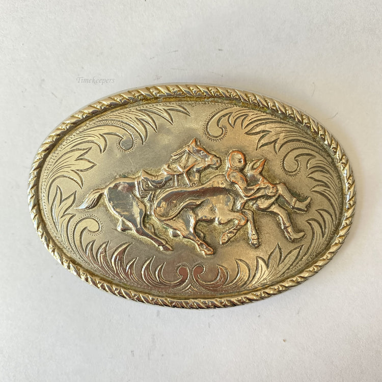 • Vintage Belt Buckle. Cowboy Image. Silver Tone