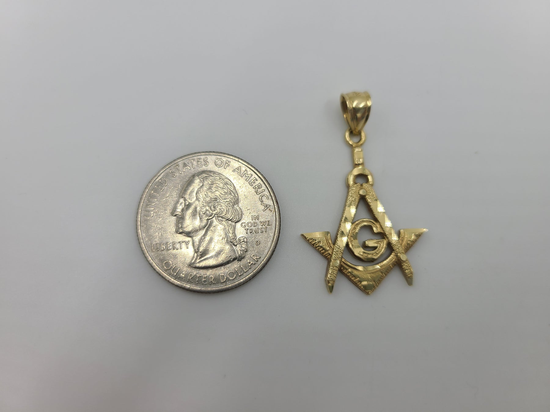This is a men's Masonic pendant set in 14kt yellow gold. Stamped 14k on the bail of the pendant. Perfect for any special occasion. Would be a nice anniversary, birthday, Christmas, Father's Day or Valentine's Day gift for him.