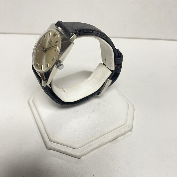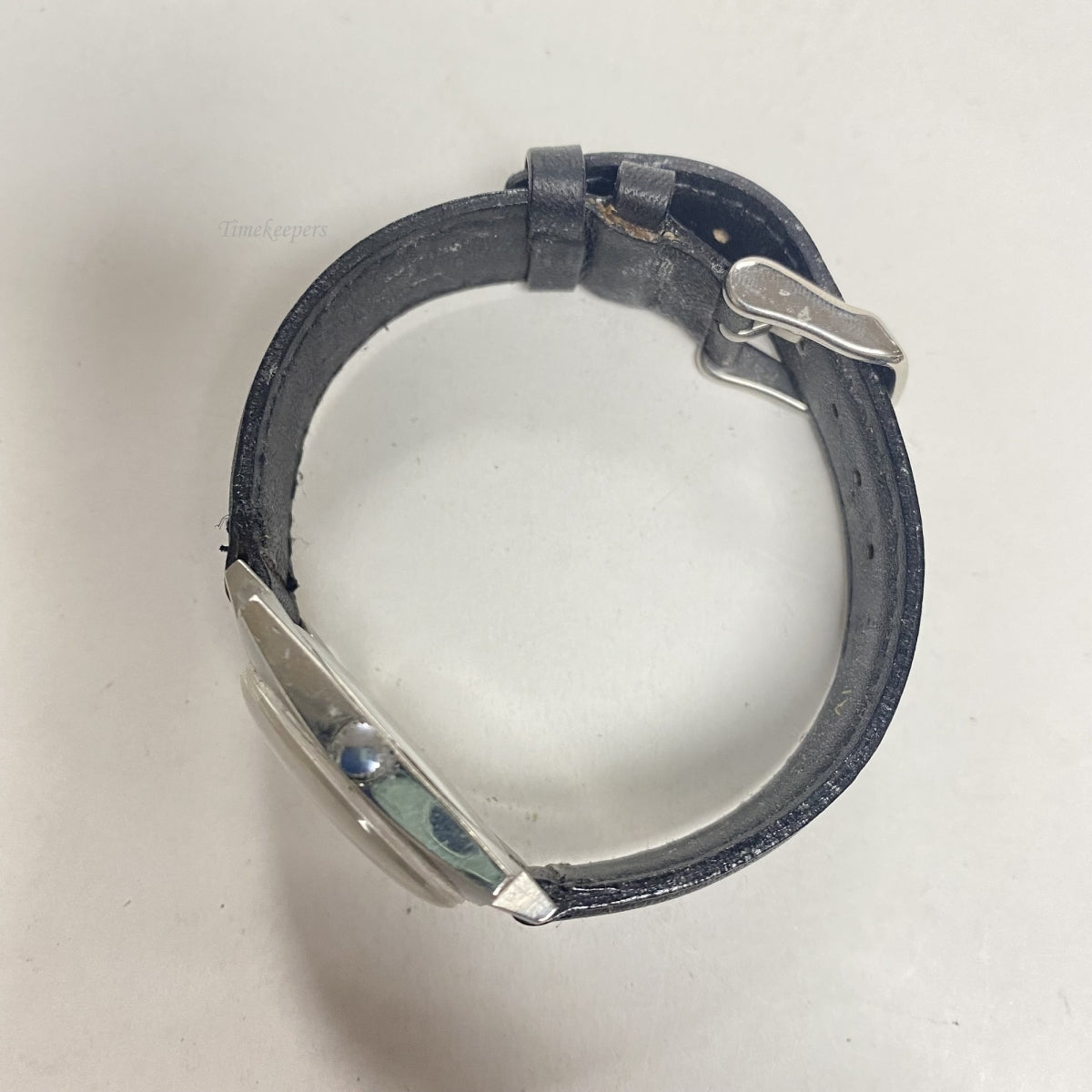 Vintage Wittnauer Wrist Watch. Silver Tone Case. Black leather band.