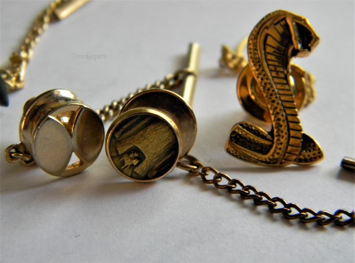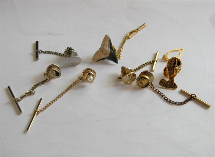 For sale: (1) Lot of 7 Tie Tacks Sharks Tooth, Cobra, Redwoods, Misc Gold and Silver Tone