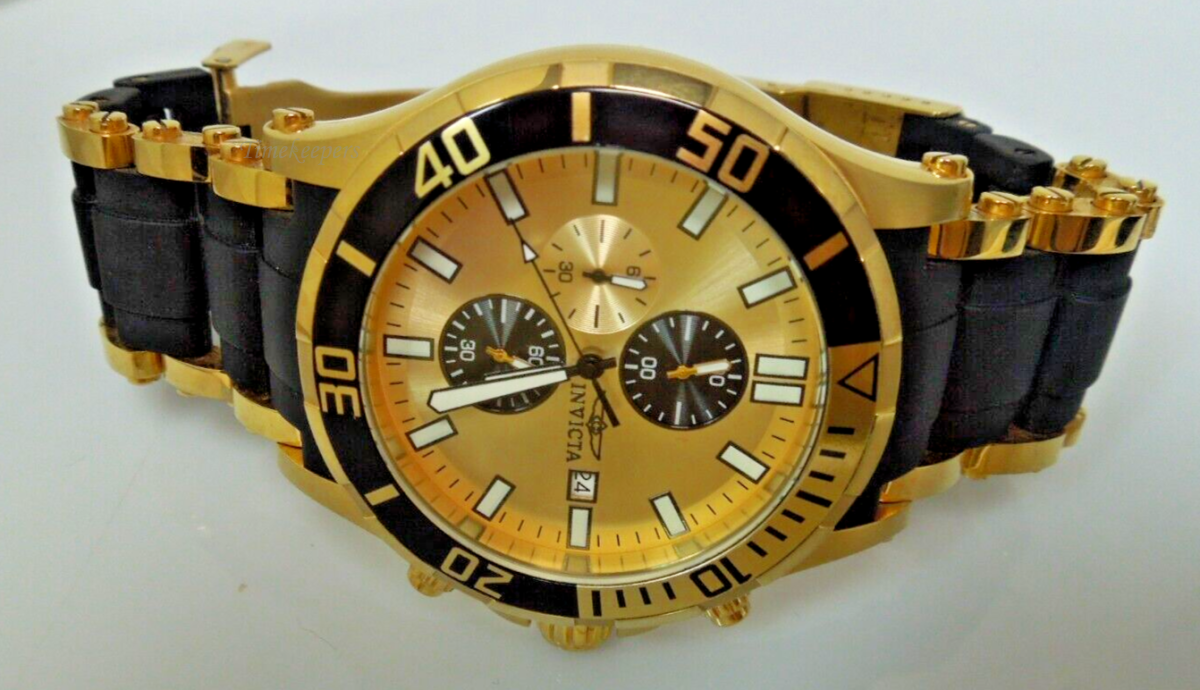 For Sale (1) : s837 Invicta Men's 1478 Sea Spider Chrono Gold Dial Black Polyurethane Watch