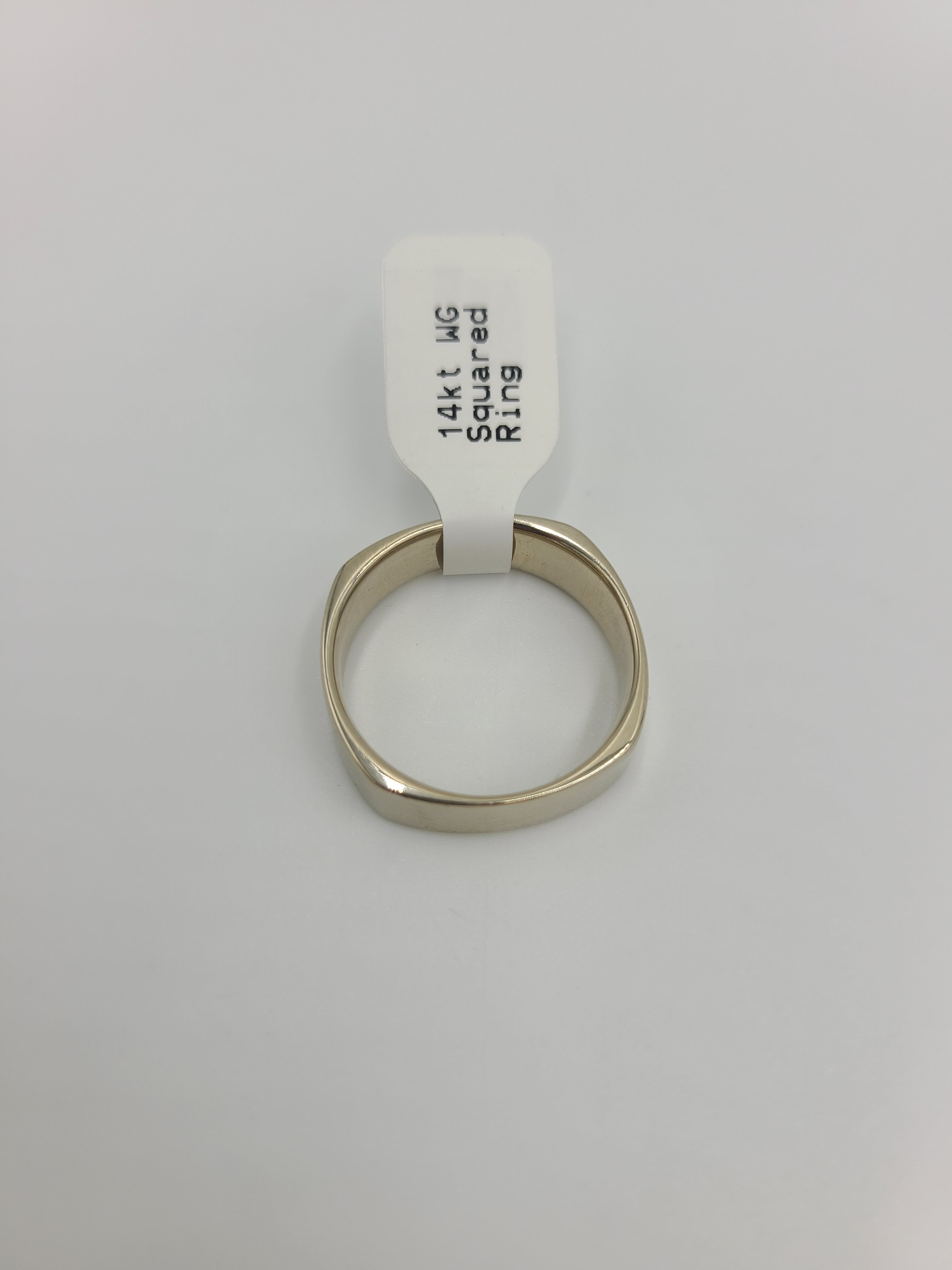 k671 Simple Unisex 14kt White Gold Squared Wide Wedding Band