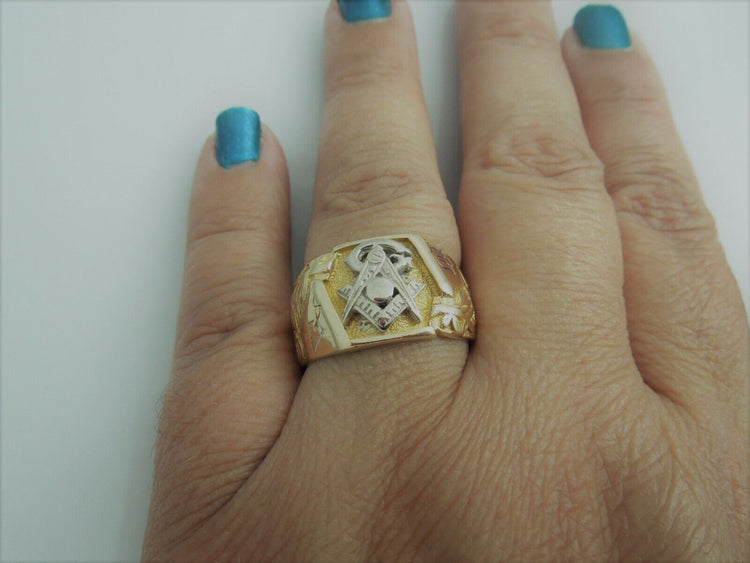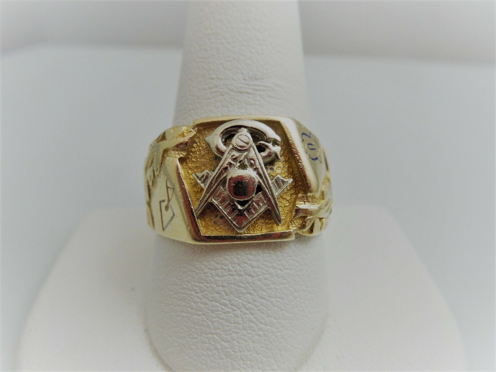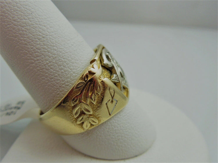 g822 Handsome Men's 10kt and 14kt Gold Masonic Ring Size 10.5