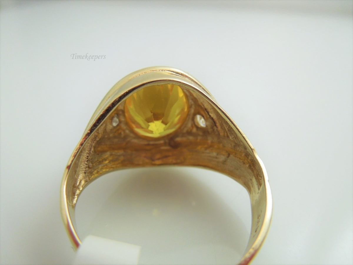 For Sale: (1) g938 Stylish Unisex Lab Created Yellow Topaz Ring set in 14kt Yellow Gold