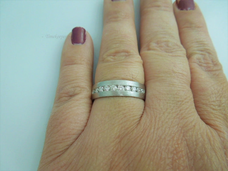 For Sale: (1) g958 Stylish Unisex Brushed 14kt White Gold Diamond Wedding Band