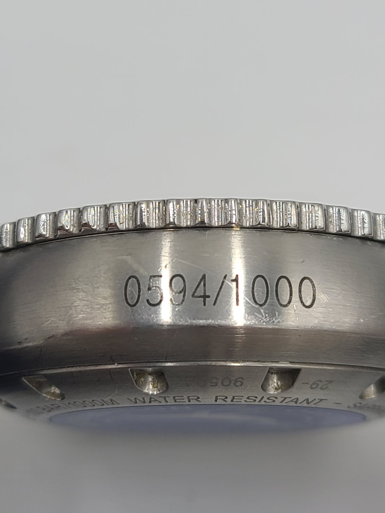 This is a handsome men's automatic Oris wristwatch. Numbered 0594/1000, this Great Barrier Reef Limited Edition comes with box and papers. Would be a nice anniversary, birthday, Christmas, Father's Day, Graduation, Retirement or Valentine's Day gift for him!