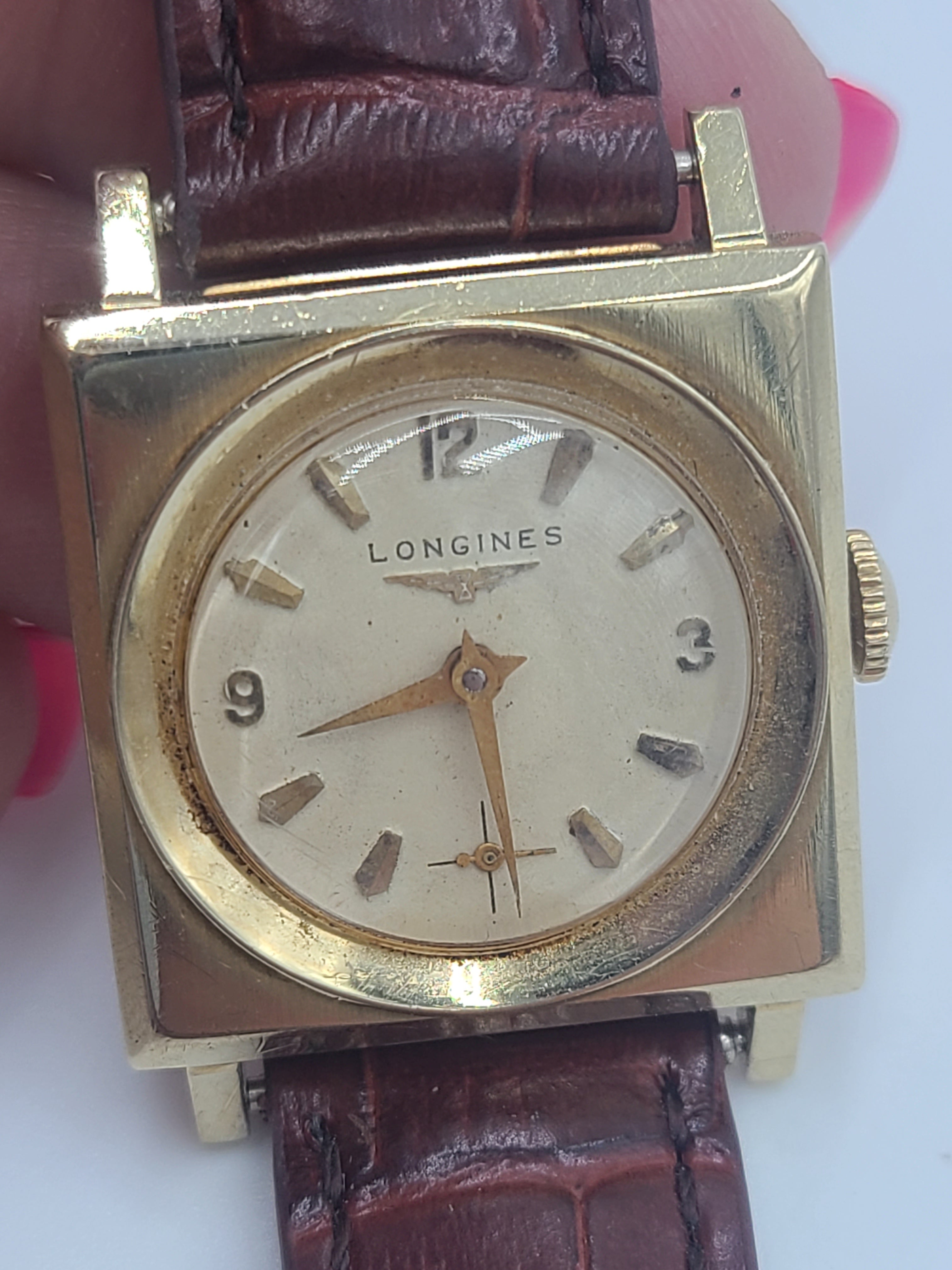 k697 Vintage Unisex 14kt Yellow Gold Mechanical Longines Wristwatch