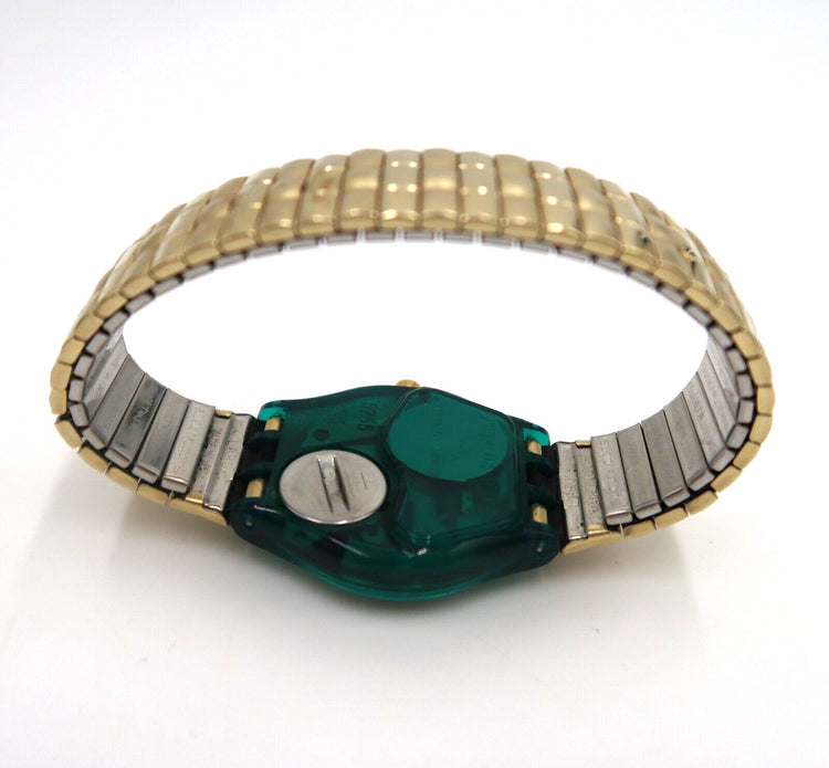 • Band: Correct, original unused gold-tone link stretch bracelet.