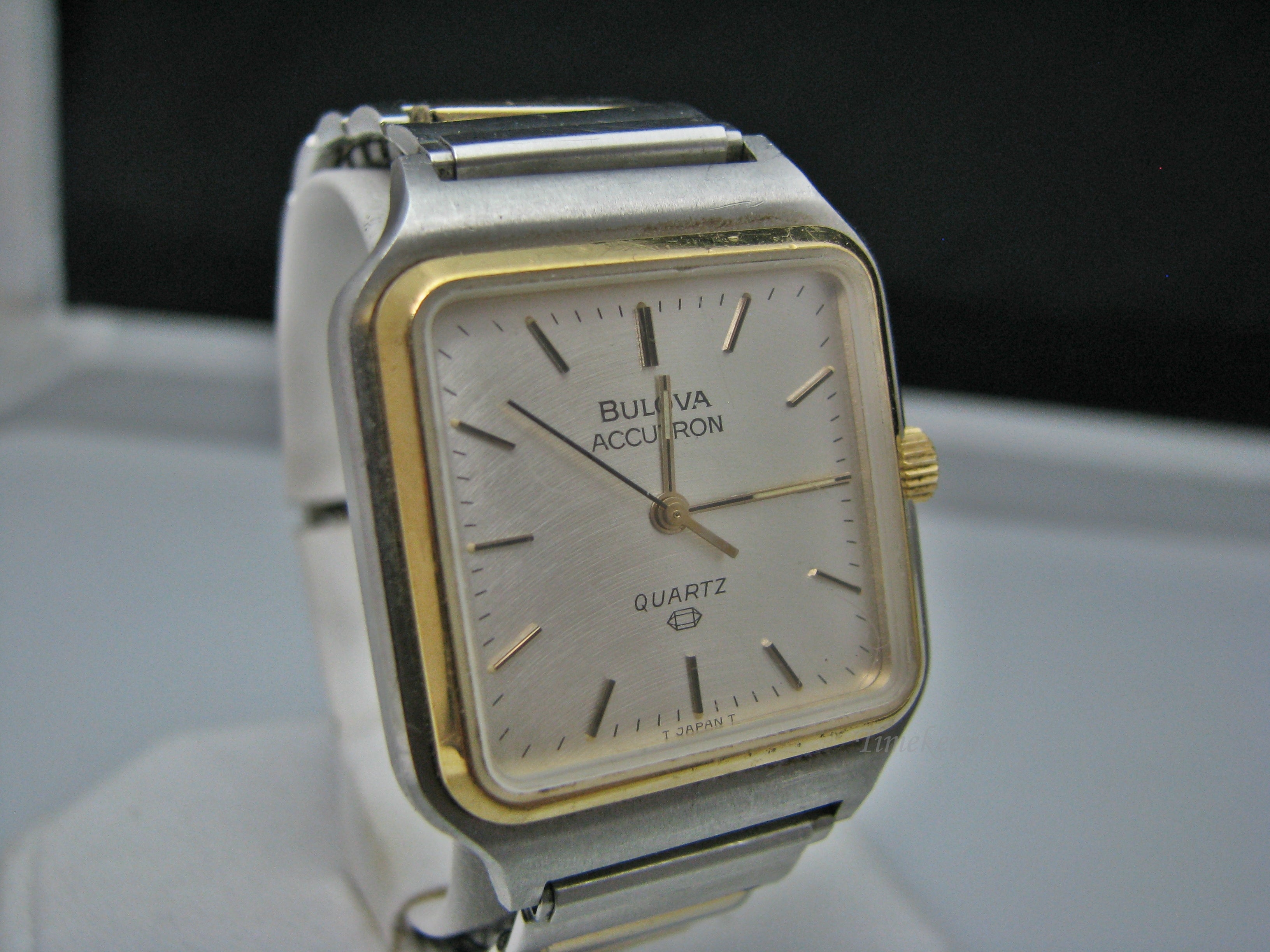 H251 Unique Two Tone Bulova Stainless Steel Mechanical Wrist Watch from 1980's