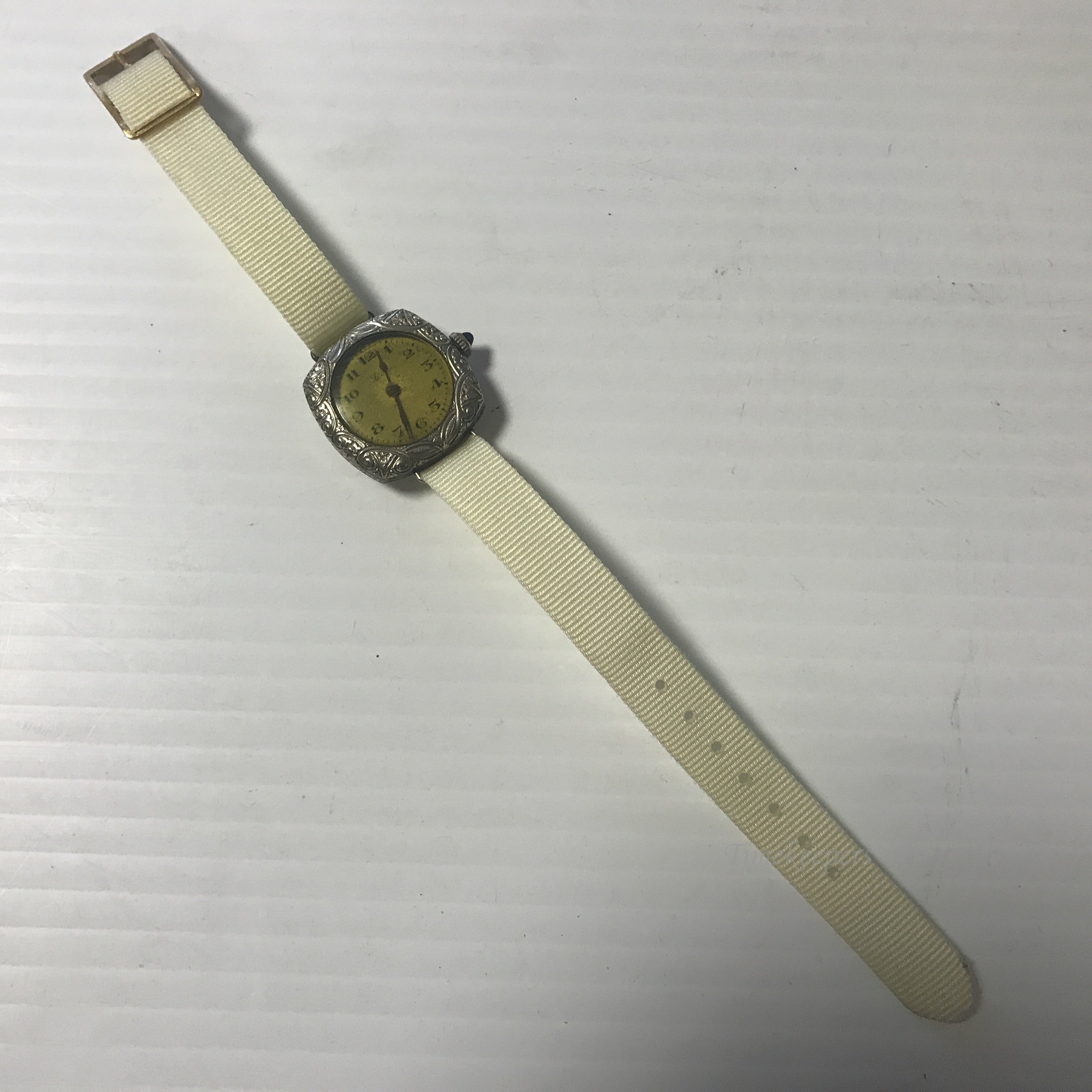e614 Vintage Silver Tone Hand-Winding Canvas Band Lady's Wrist Watch